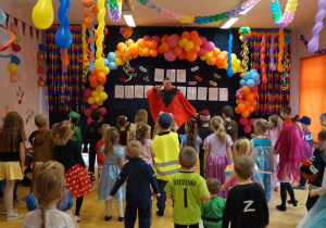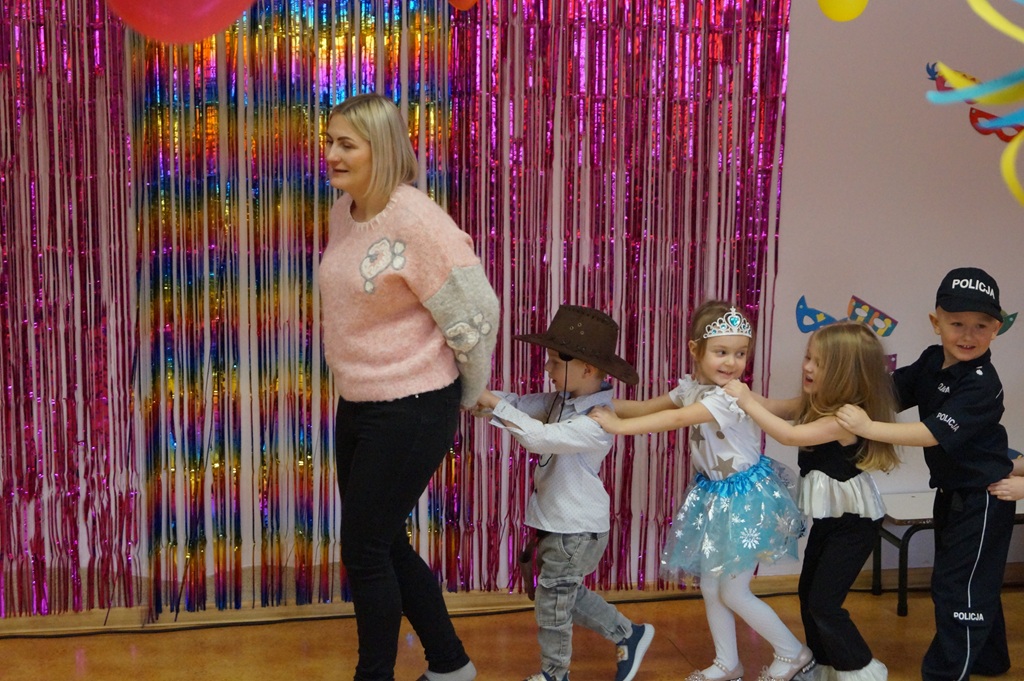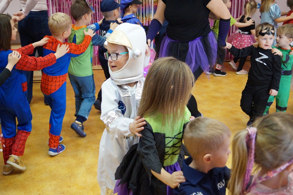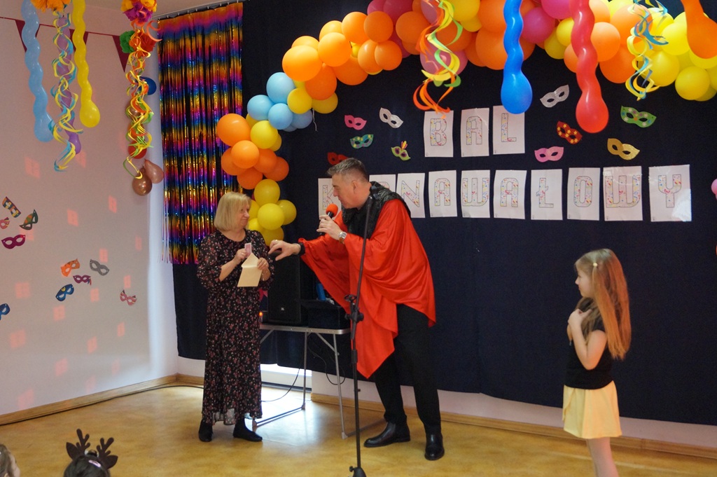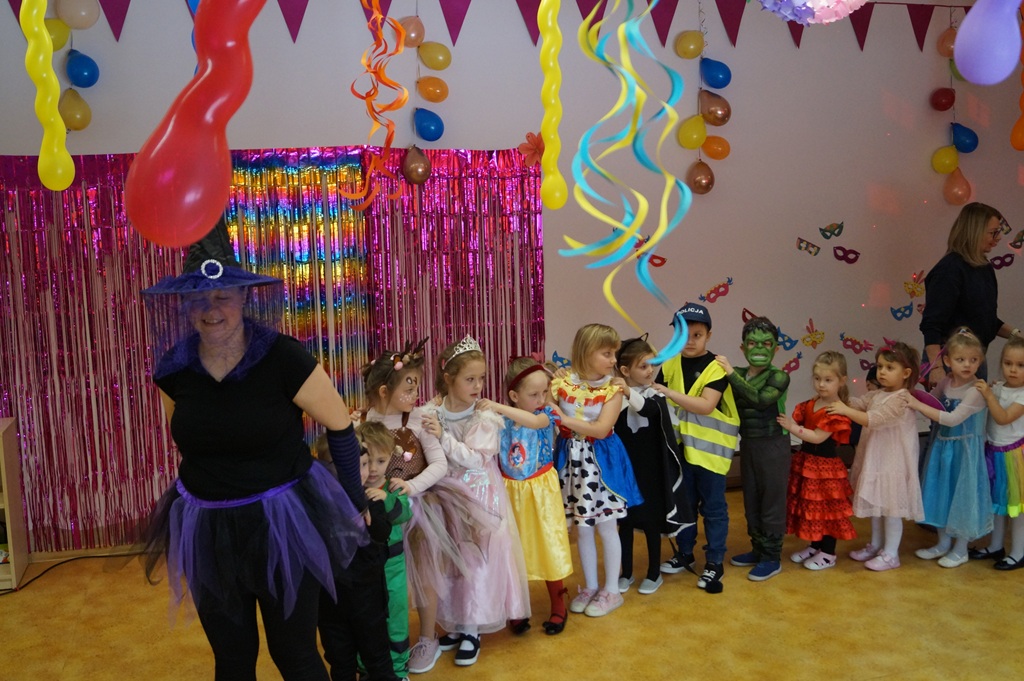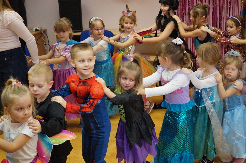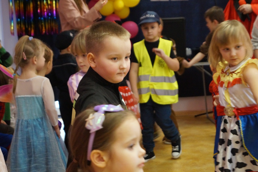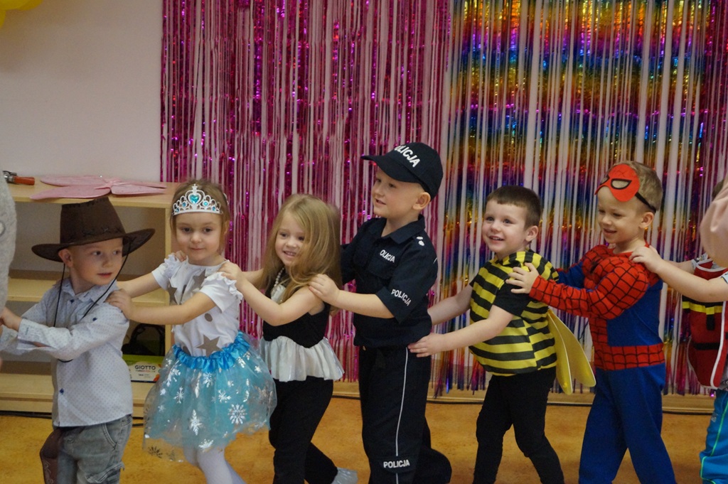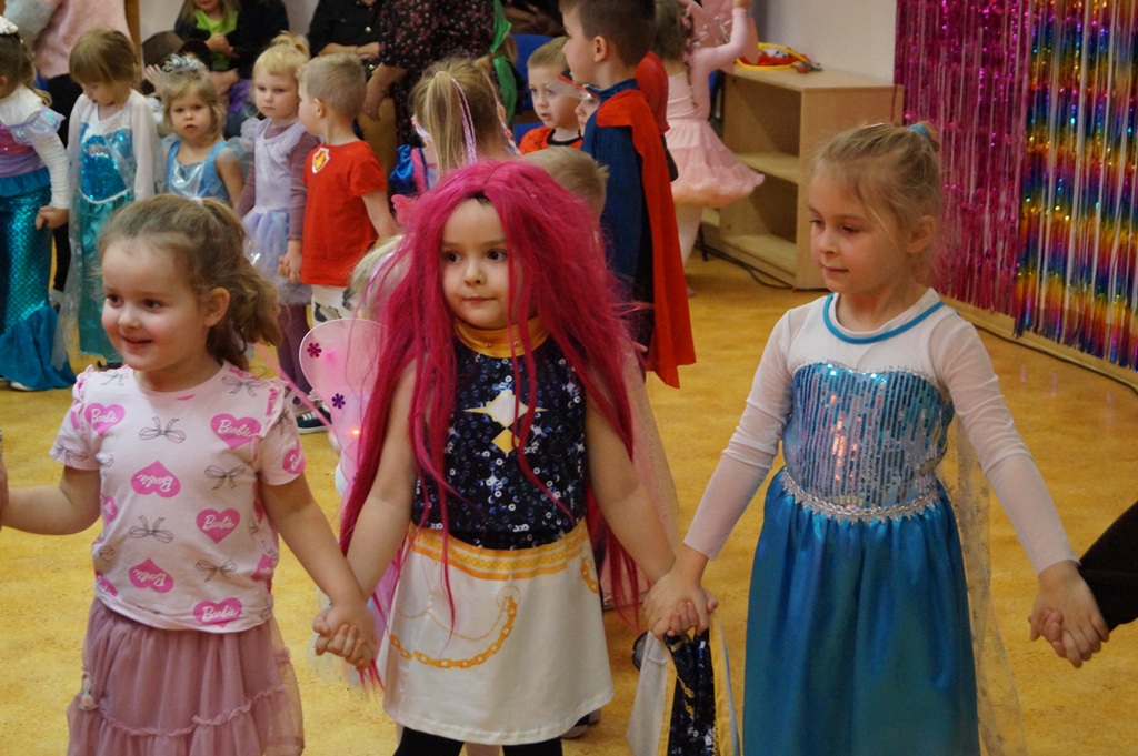 Podczas balu zorganizowano tańce oraz konkursy, które dostarczyły dzieciom wielu pozytywnych wrażeń. Uczestnikom towarzyszyła radosna atmosfera, a wspólna zabawa sprzyjała integracji grup przedszkolnych. Bal poprowadził Pan Maciej Duda - iluzjonista Damatus Studio Magic ART. Dla dzieci przygotowano również słodki poczęstunek.