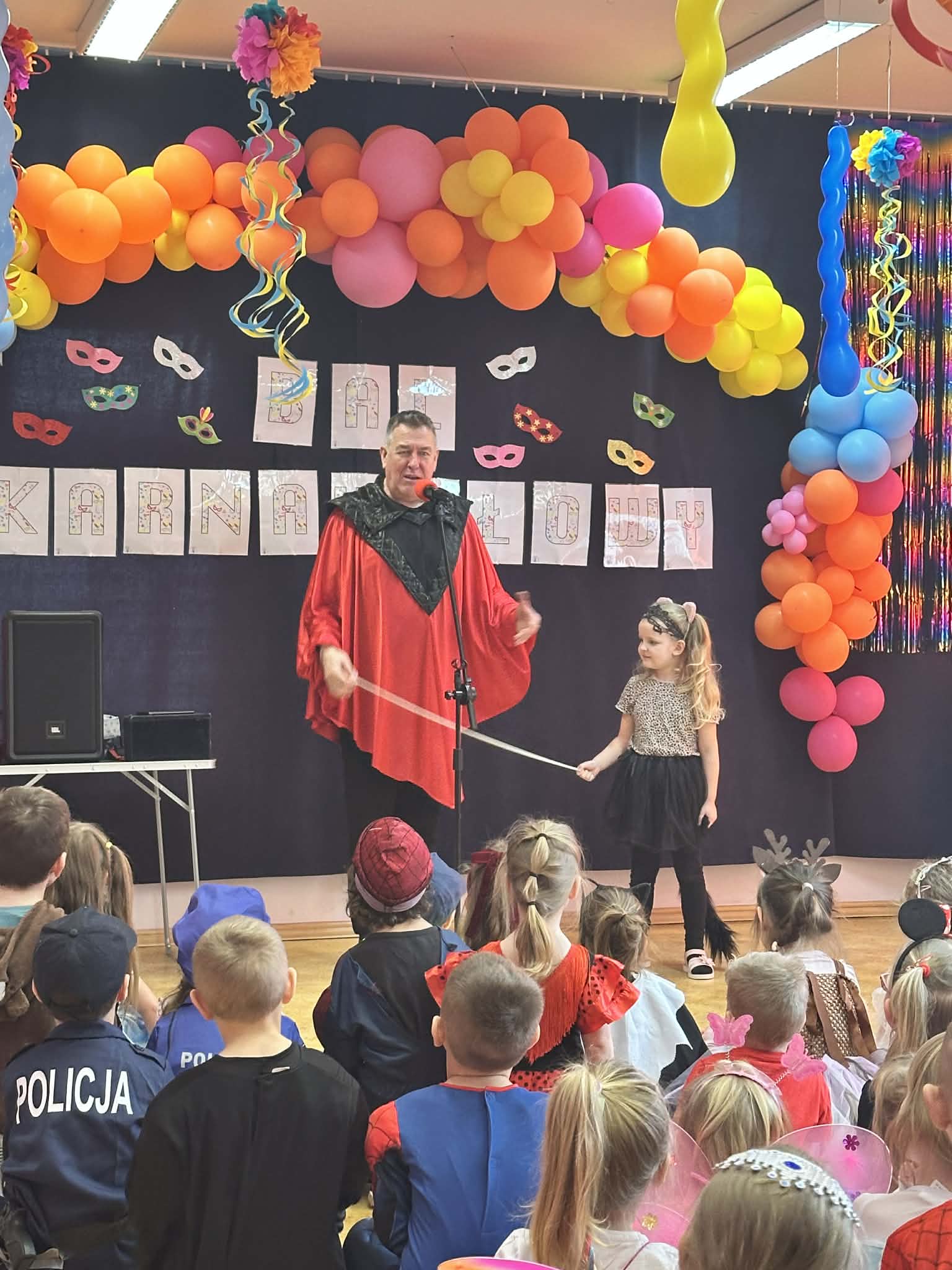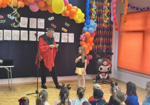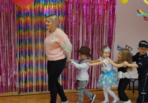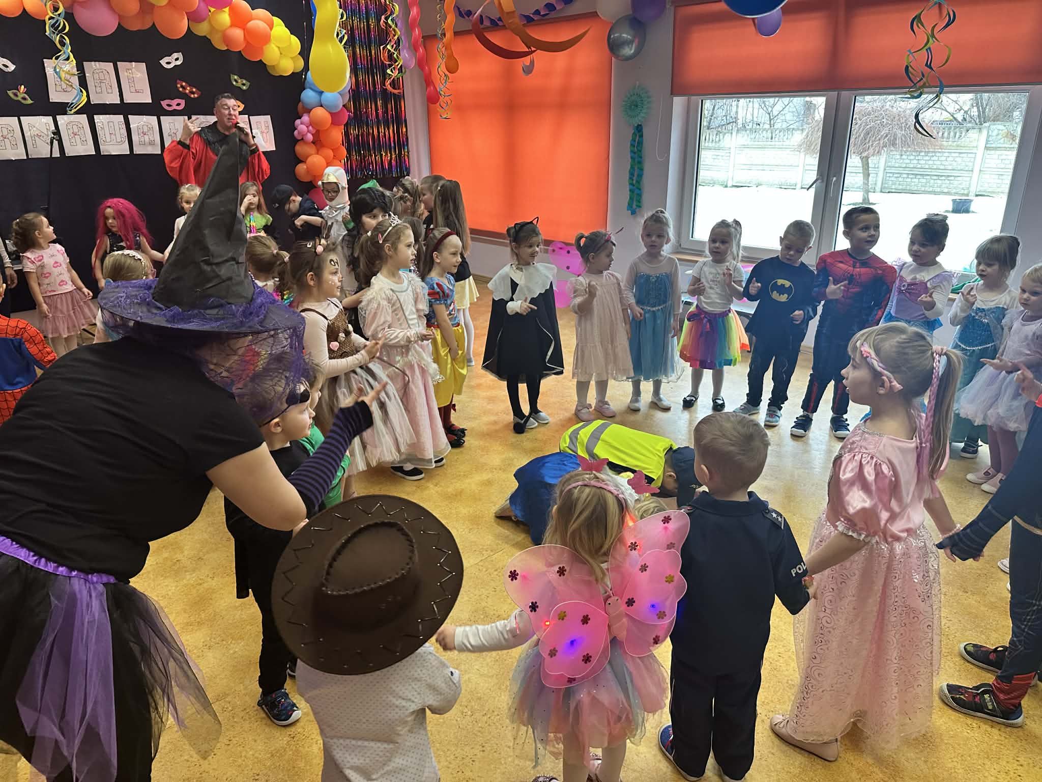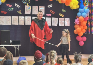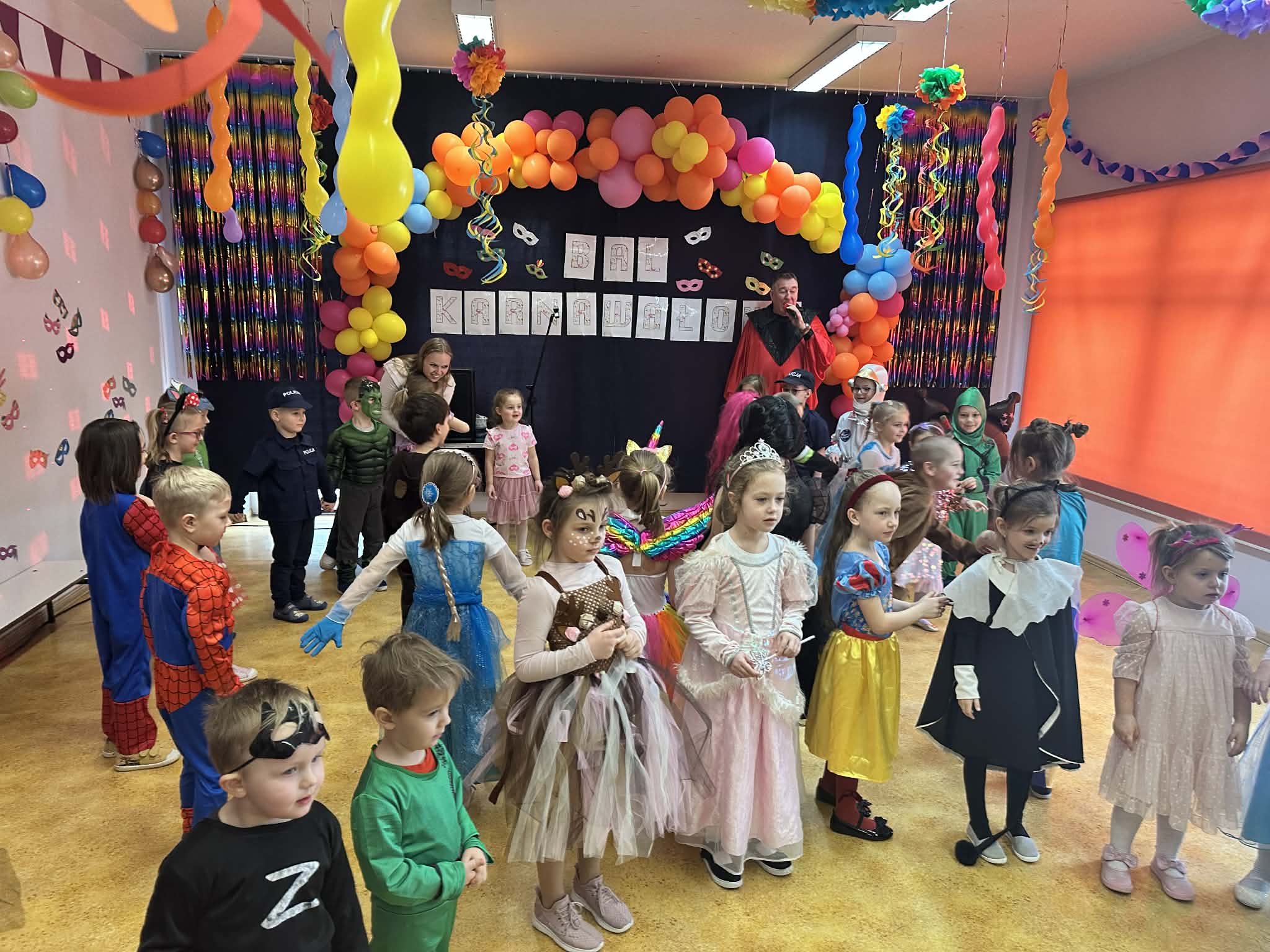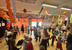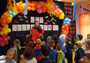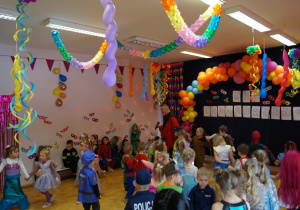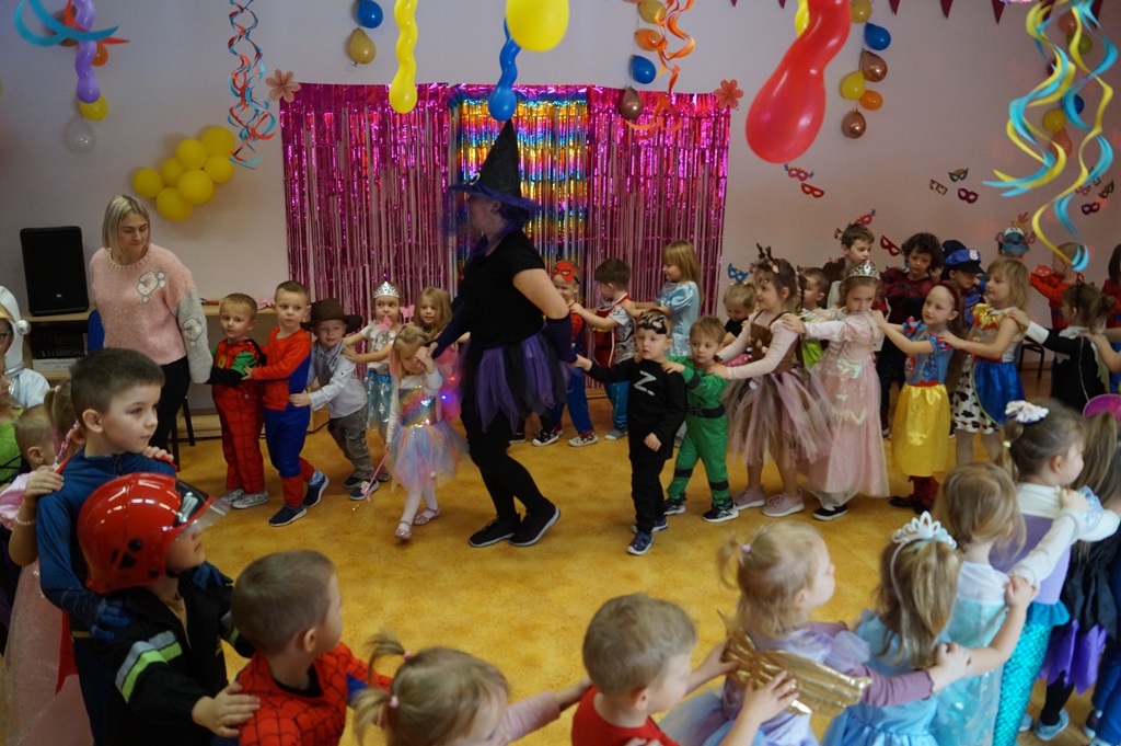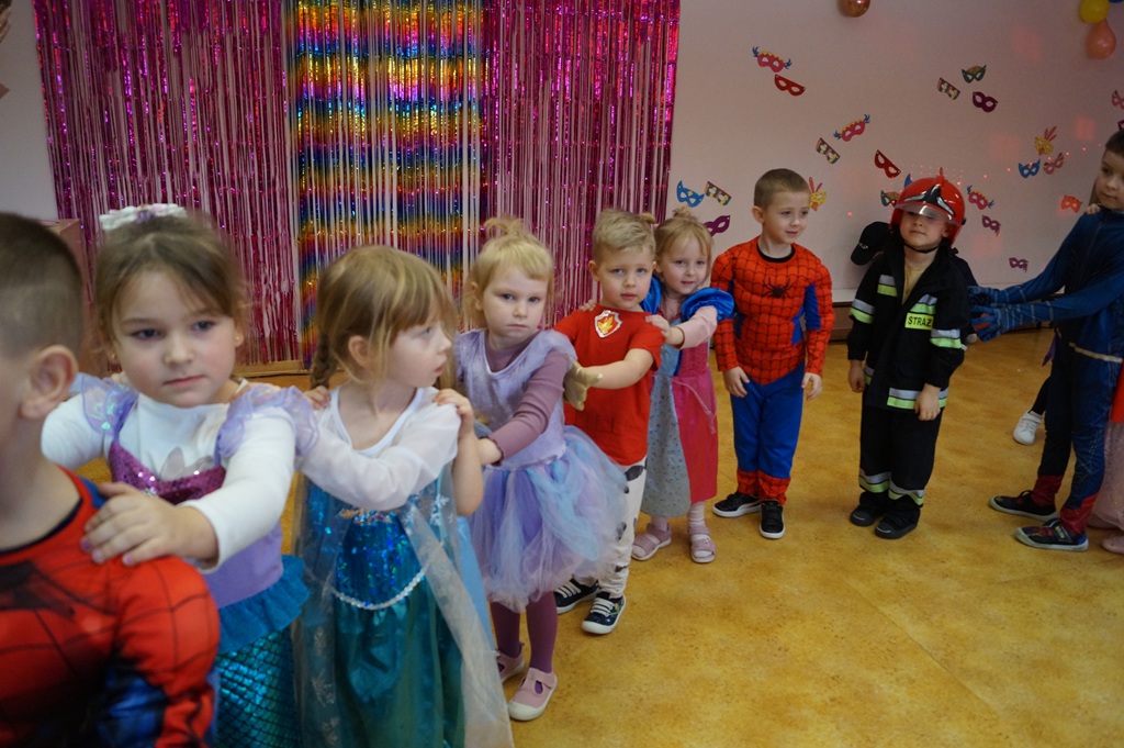 Podczas balu zorganizowano tańce oraz konkursy, które dostarczyły dzieciom wielu pozytywnych wrażeń. Uczestnikom towarzyszyła radosna atmosfera, a wspólna zabawa sprzyjała integracji grup przedszkolnych. Bal poprowadził Pan Maciej Duda - iluzjonista Damatus Studio Magic ART. Dla dzieci przygotowano również słodki poczęstunek.