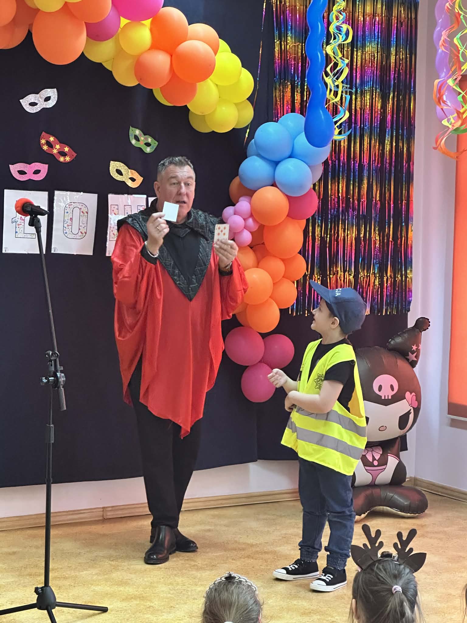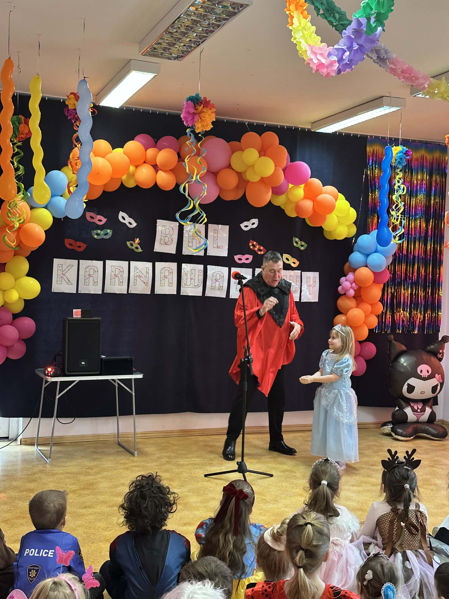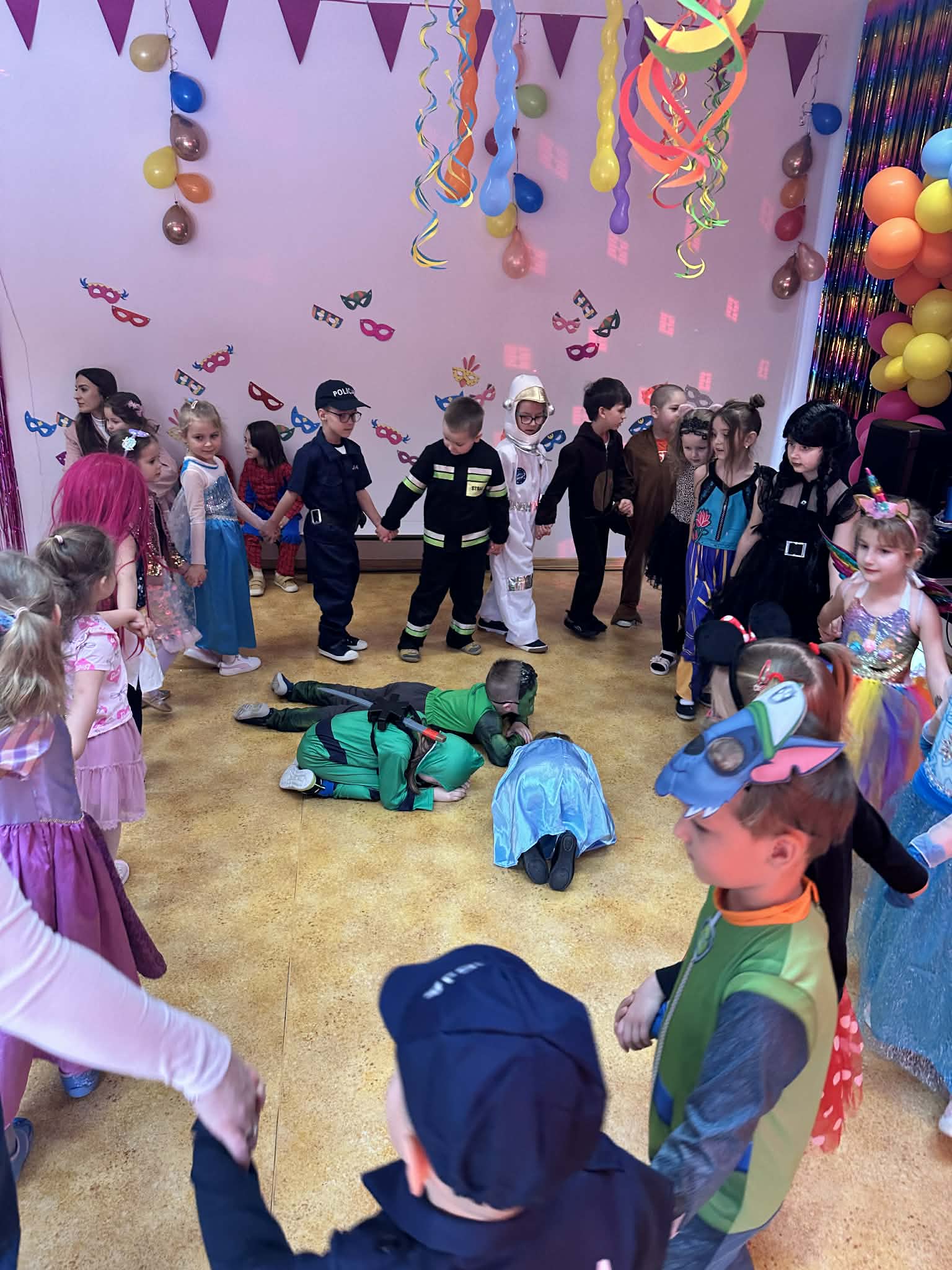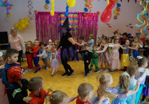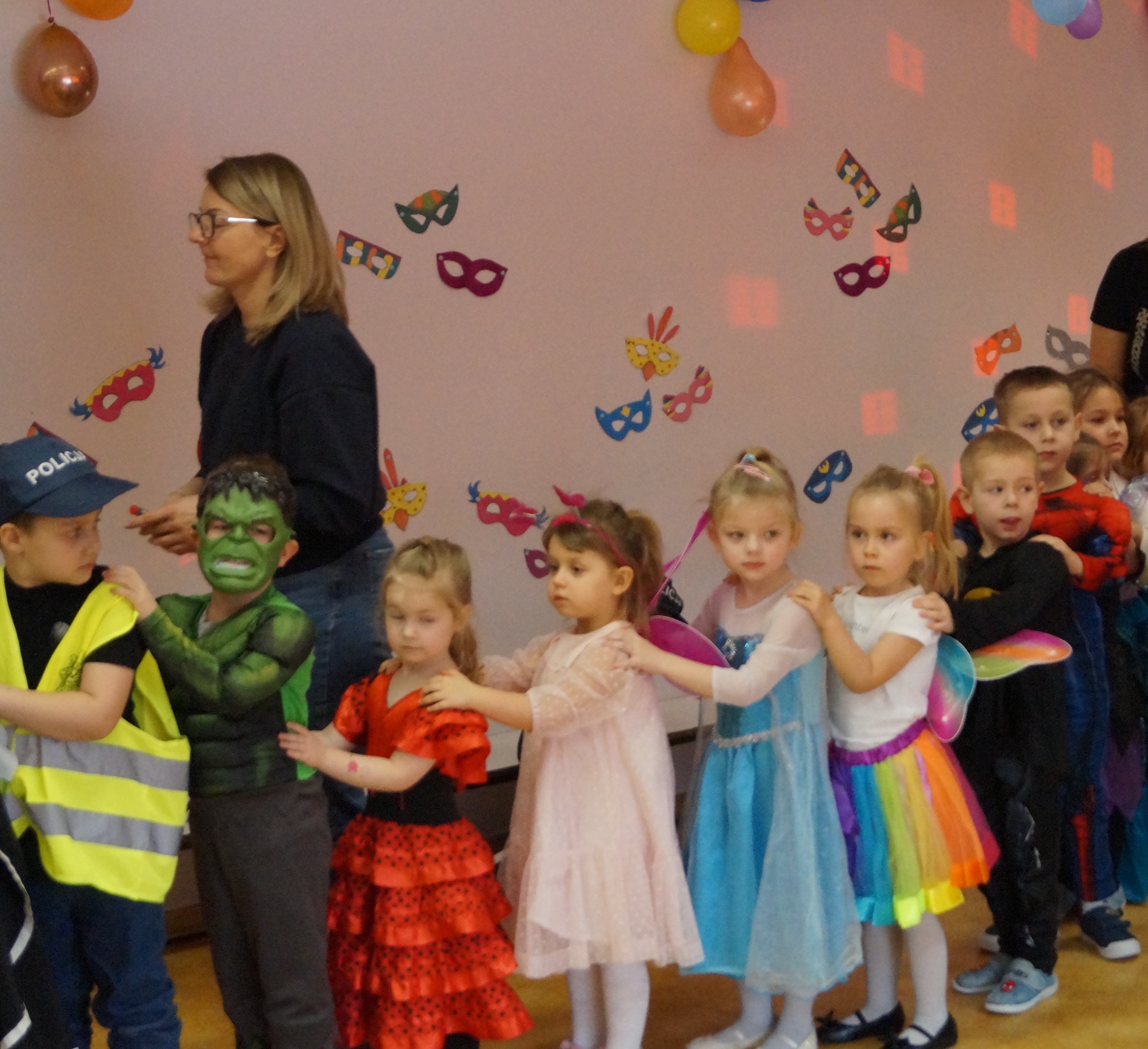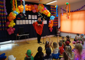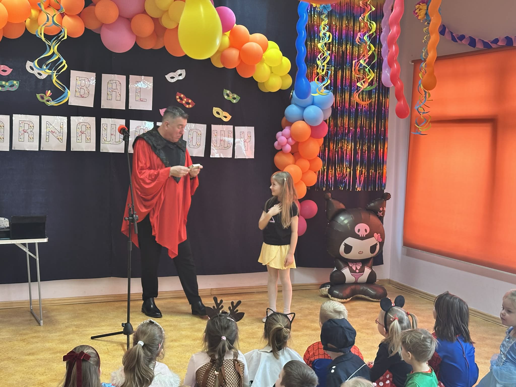 Podczas balu zorganizowano tańce oraz konkursy, które dostarczyły dzieciom wielu pozytywnych wrażeń. Uczestnikom towarzyszyła radosna atmosfera, a wspólna zabawa sprzyjała integracji grup przedszkolnych. Bal poprowadził Pan Maciej Duda - iluzjonista Damatus Studio Magic ART. Dla dzieci przygotowano również słodki poczęstunek.