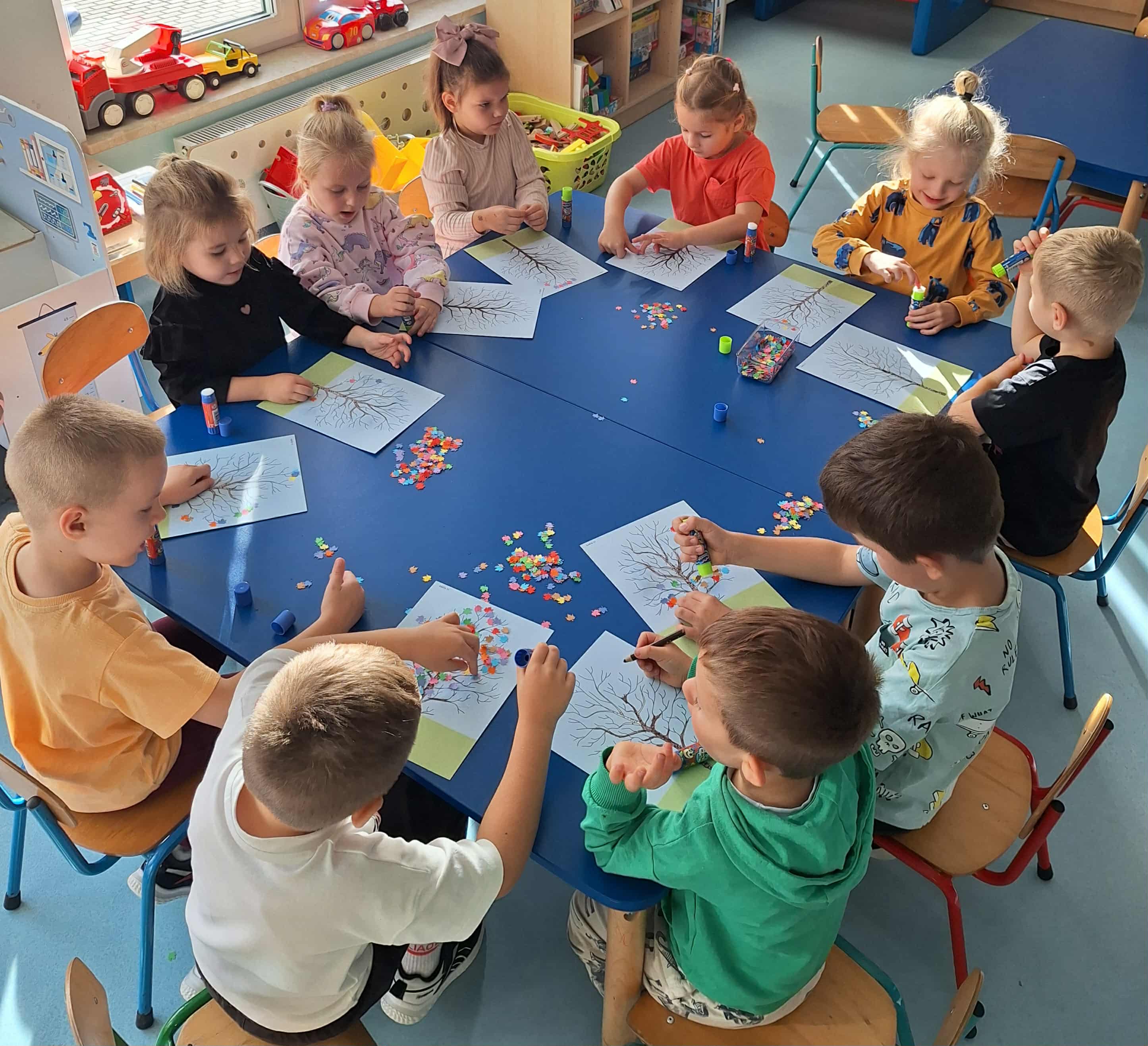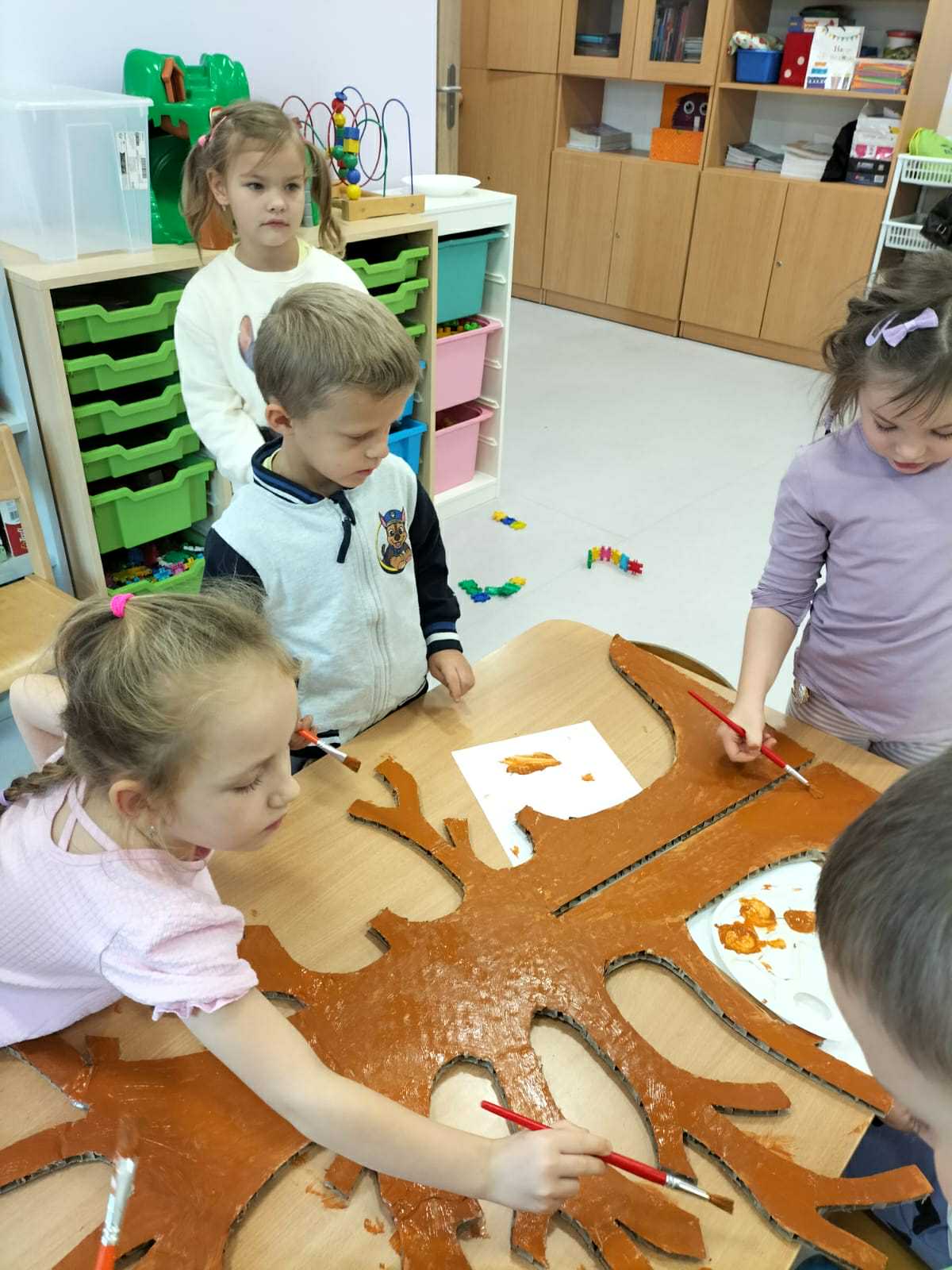 Tego dnia przedszkolaki wzięły udział w wielu aktywnościach, których głównym motywem było drzewo. Dzieci wykonały ciekawe prace plastyczne, słuchały opowiadania o drzewach, uczestniczyły w zajęciach i rozmowach na temat roli drzew w życiu człowieka i ich znaczenia dla czystości powietrza.