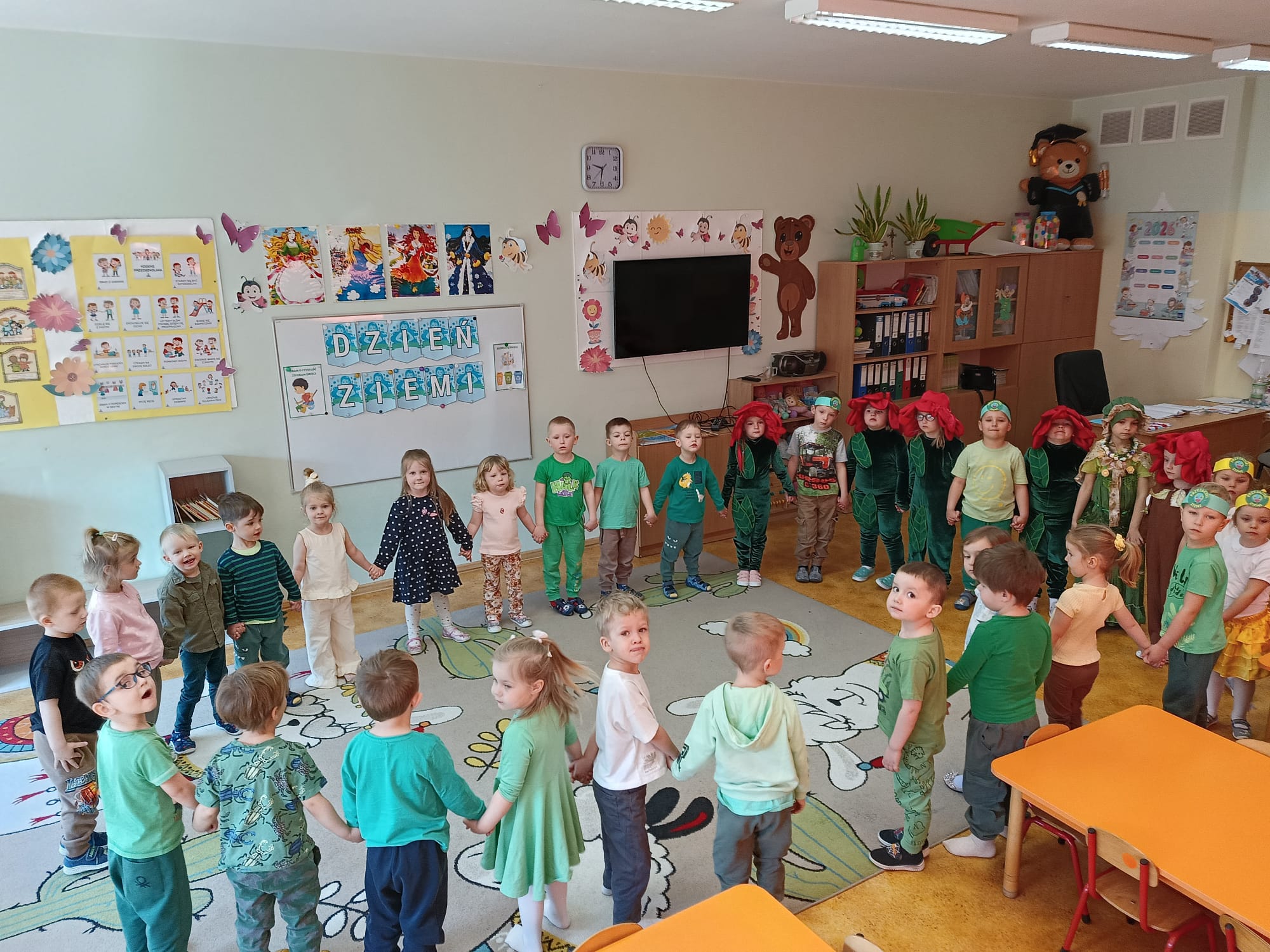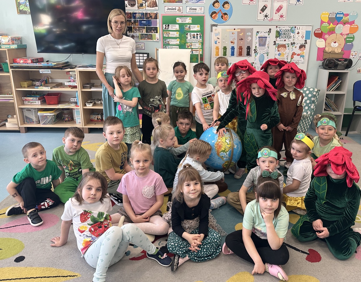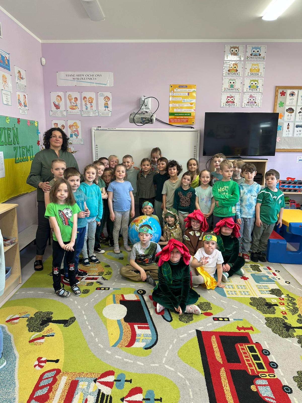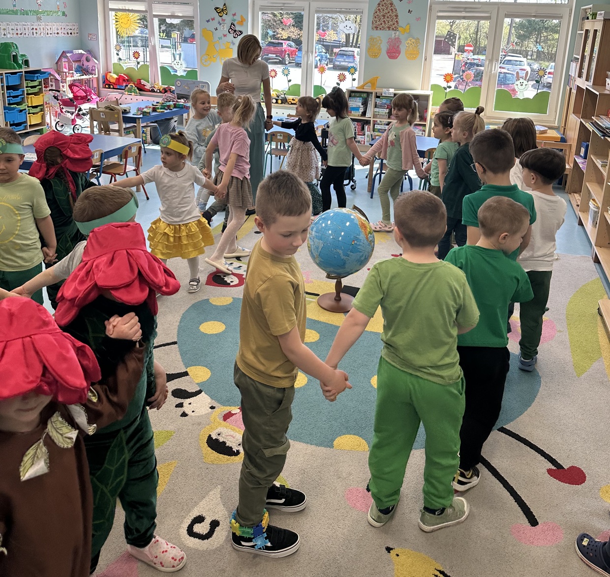 i pełnej zaangażowania atmosferze. Dzieci z grupy Muchomorki odwiedzały pozostałe sale, zapraszając wszystkich do wspólnej zabawy z okazji tego wyjątkowego święta. Każda z grup wzięła udział w zajęciach poświęconych ochronie środowiska, podczas których dzieci dowiedziały się, jak dbać o naszą planetę na co dzień.