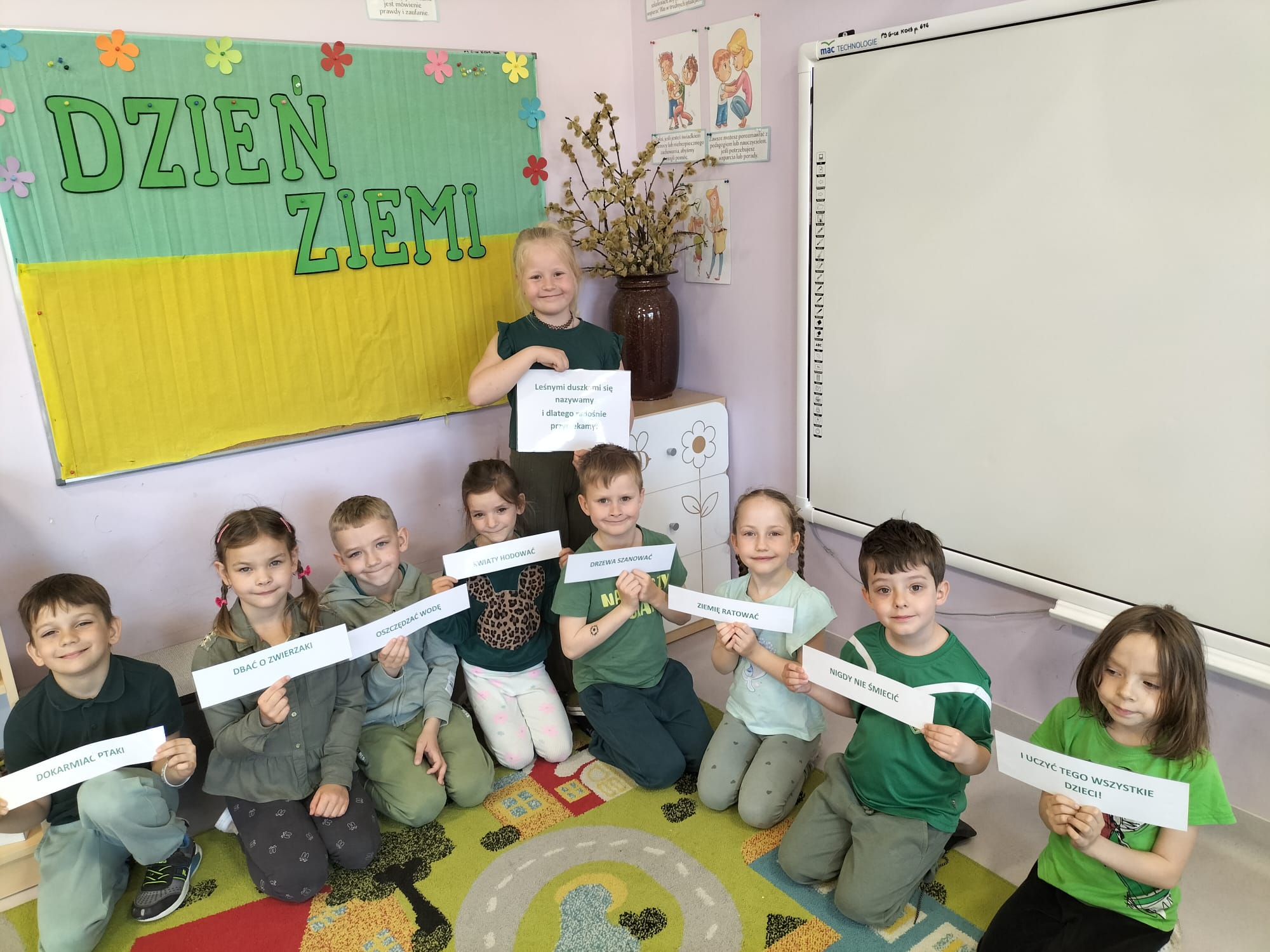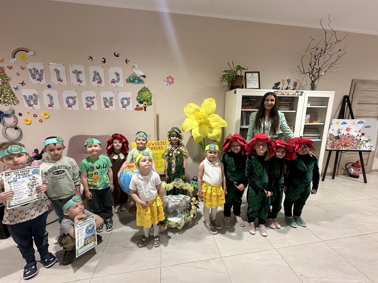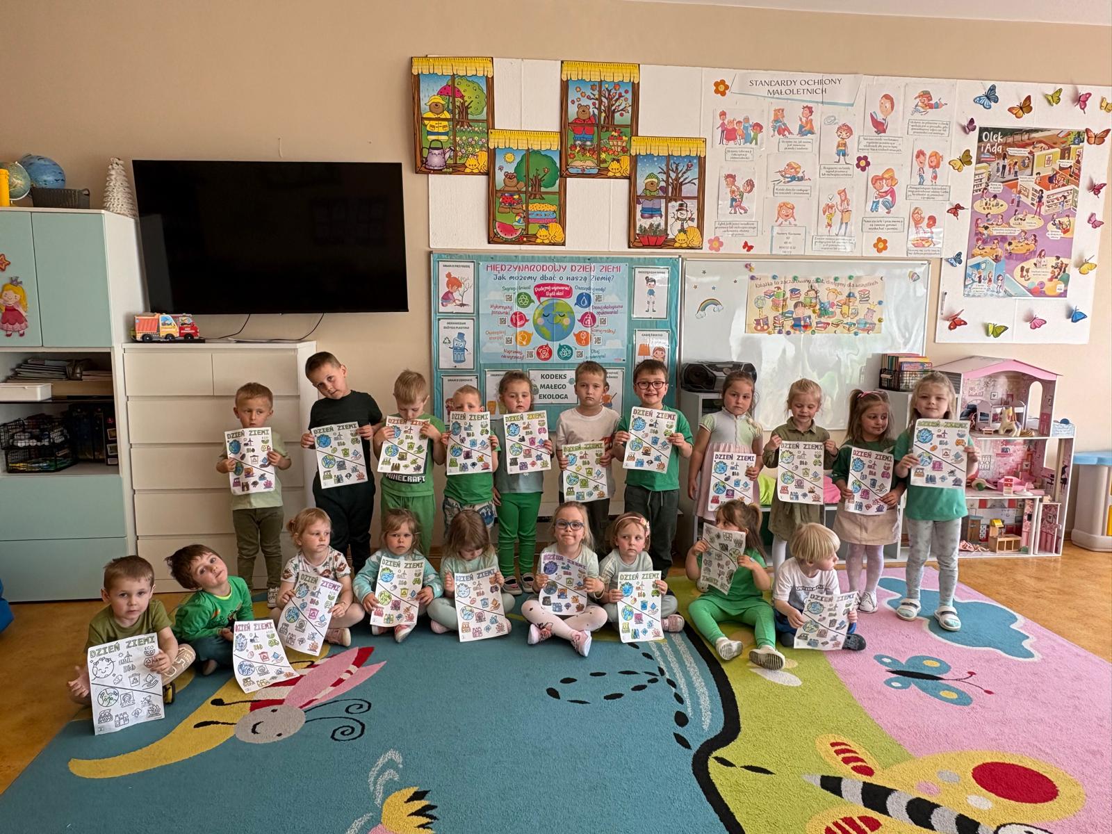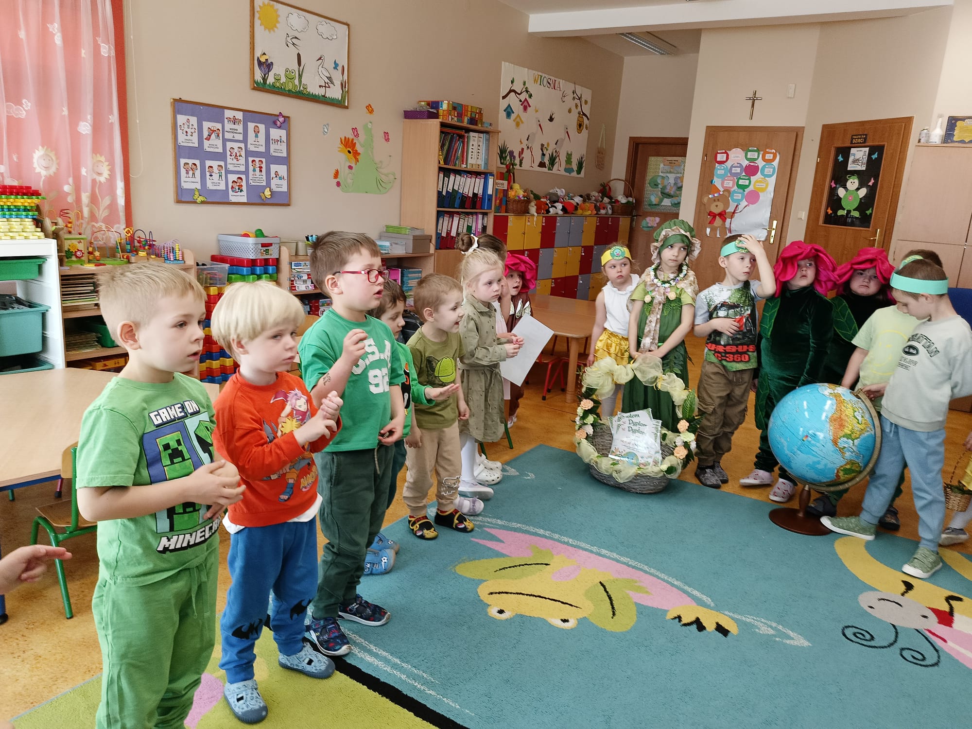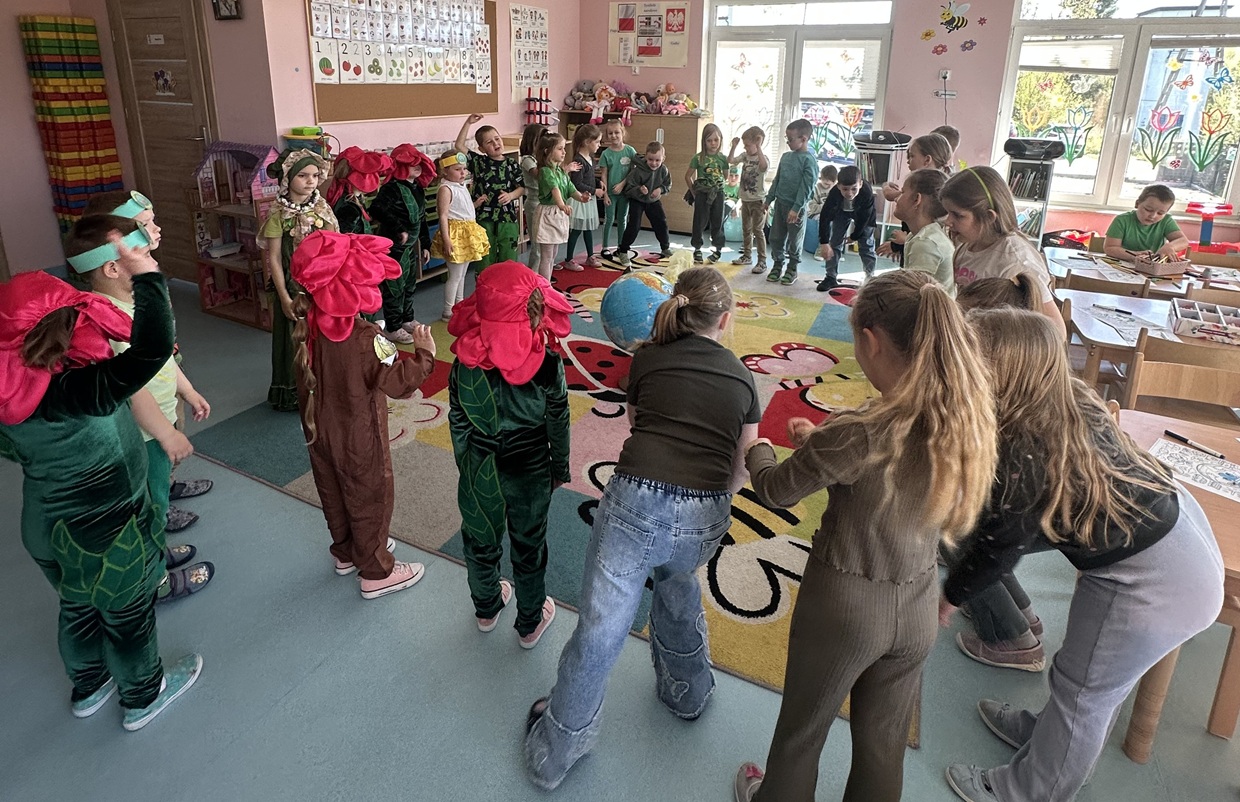 i pełnej zaangażowania atmosferze. Dzieci z grupy Muchomorki odwiedzały pozostałe sale, zapraszając wszystkich do wspólnej zabawy z okazji tego wyjątkowego święta. Każda z grup wzięła udział w zajęciach poświęconych ochronie środowiska, podczas których dzieci dowiedziały się, jak dbać o naszą planetę na co dzień.