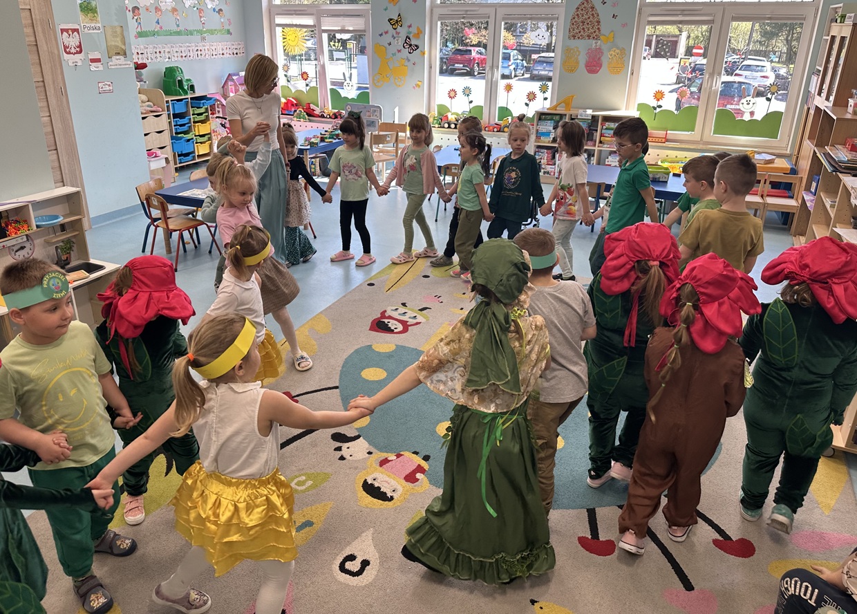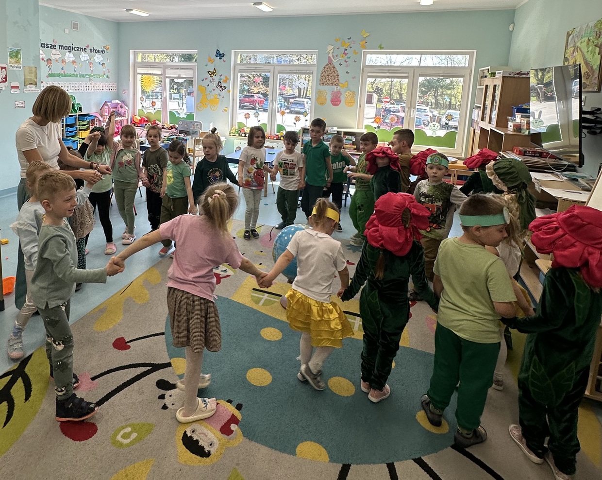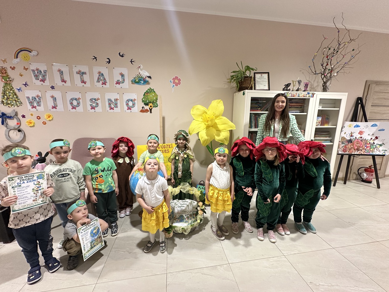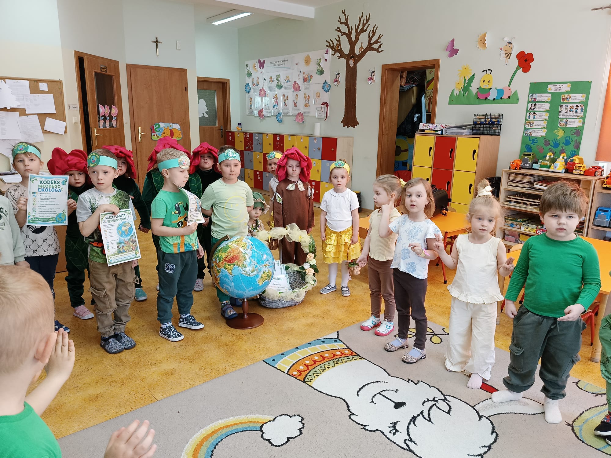 i pełnej zaangażowania atmosferze. Dzieci z grupy Muchomorki odwiedzały pozostałe sale, zapraszając wszystkich do wspólnej zabawy z okazji tego wyjątkowego święta. Każda z grup wzięła udział w zajęciach poświęconych ochronie środowiska, podczas których dzieci dowiedziały się, jak dbać o naszą planetę na co dzień.