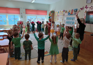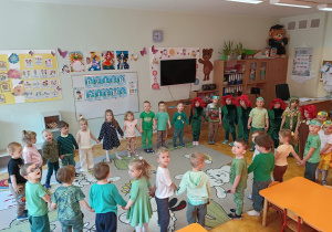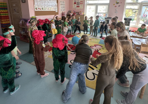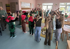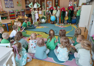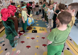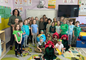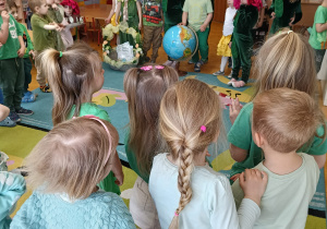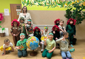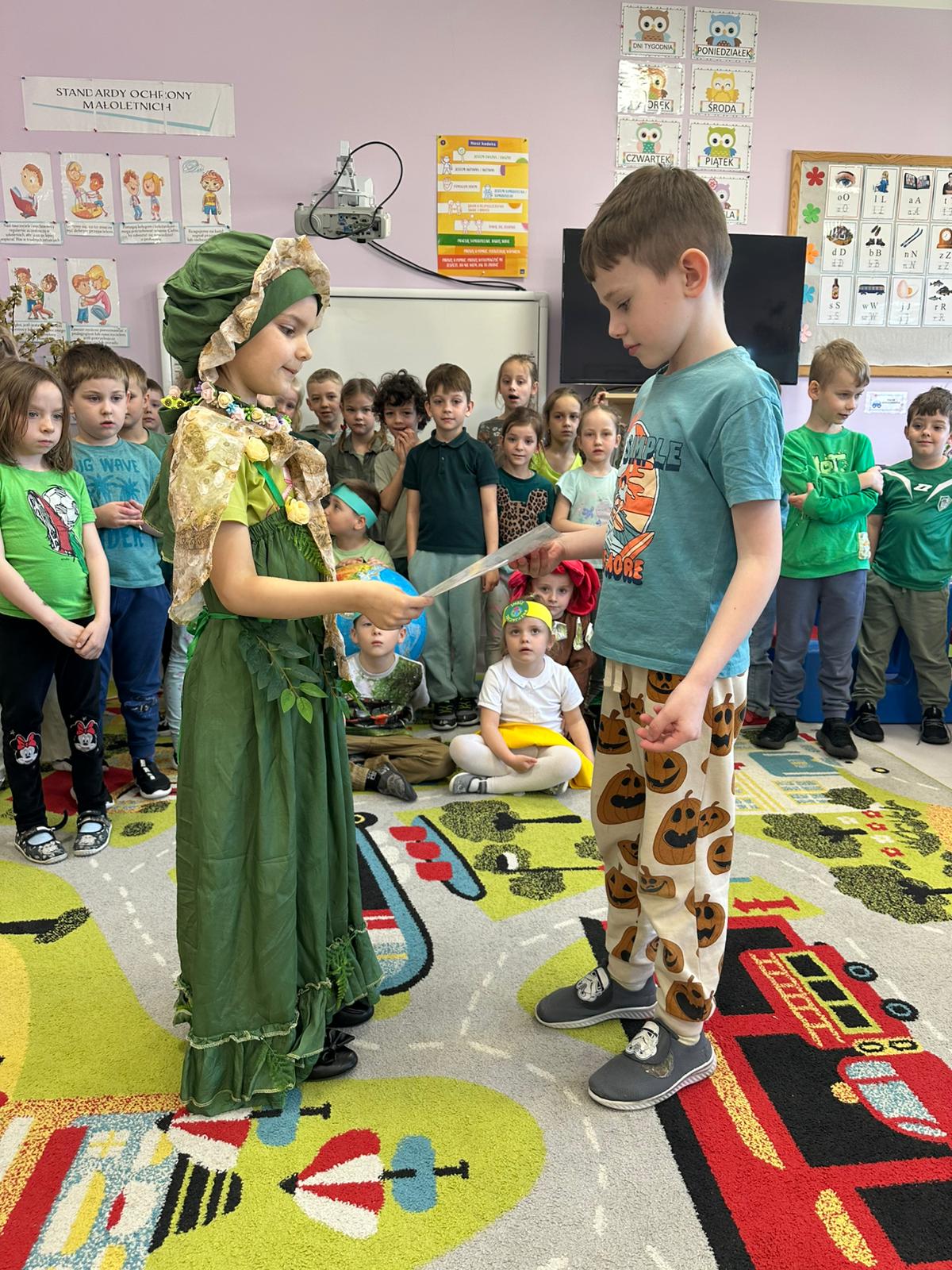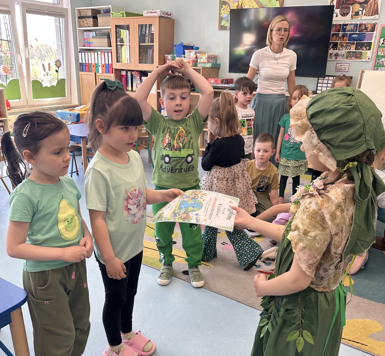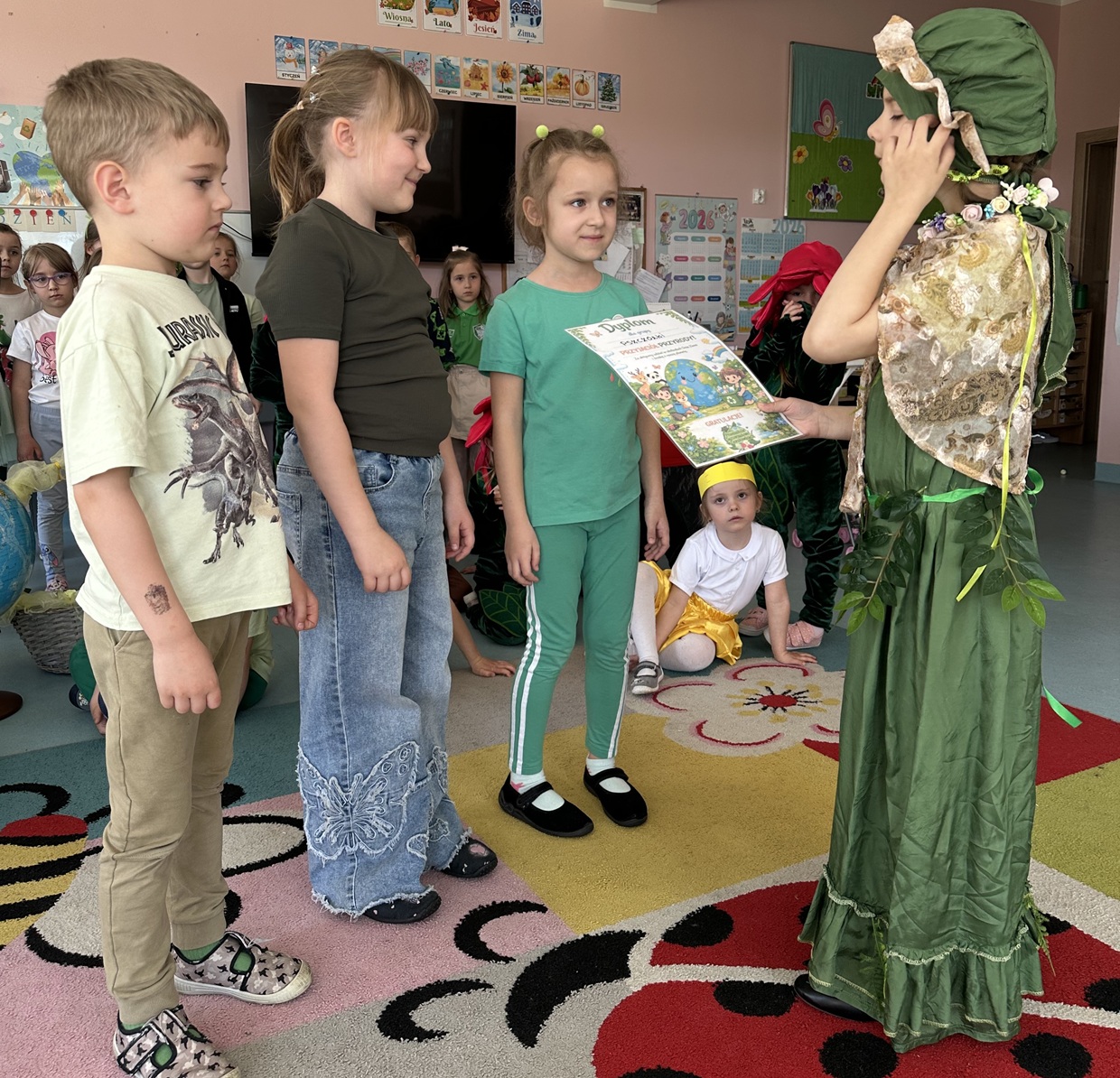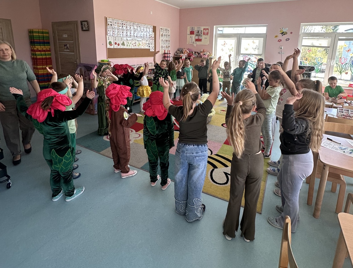 i pełnej zaangażowania atmosferze. Dzieci z grupy Muchomorki odwiedzały pozostałe sale, zapraszając wszystkich do wspólnej zabawy z okazji tego wyjątkowego święta. Każda z grup wzięła udział w zajęciach poświęconych ochronie środowiska, podczas których dzieci dowiedziały się, jak dbać o naszą planetę na co dzień.