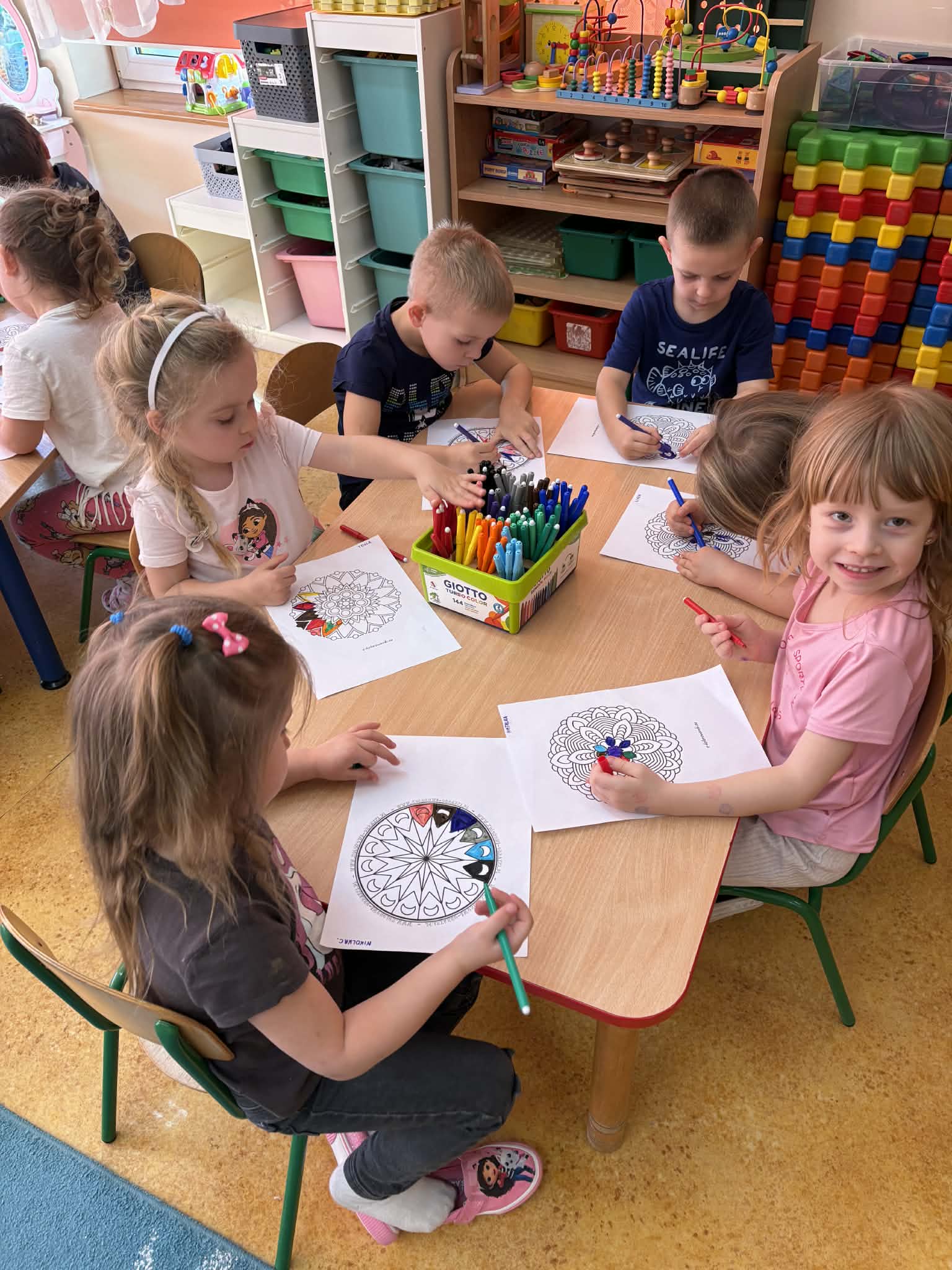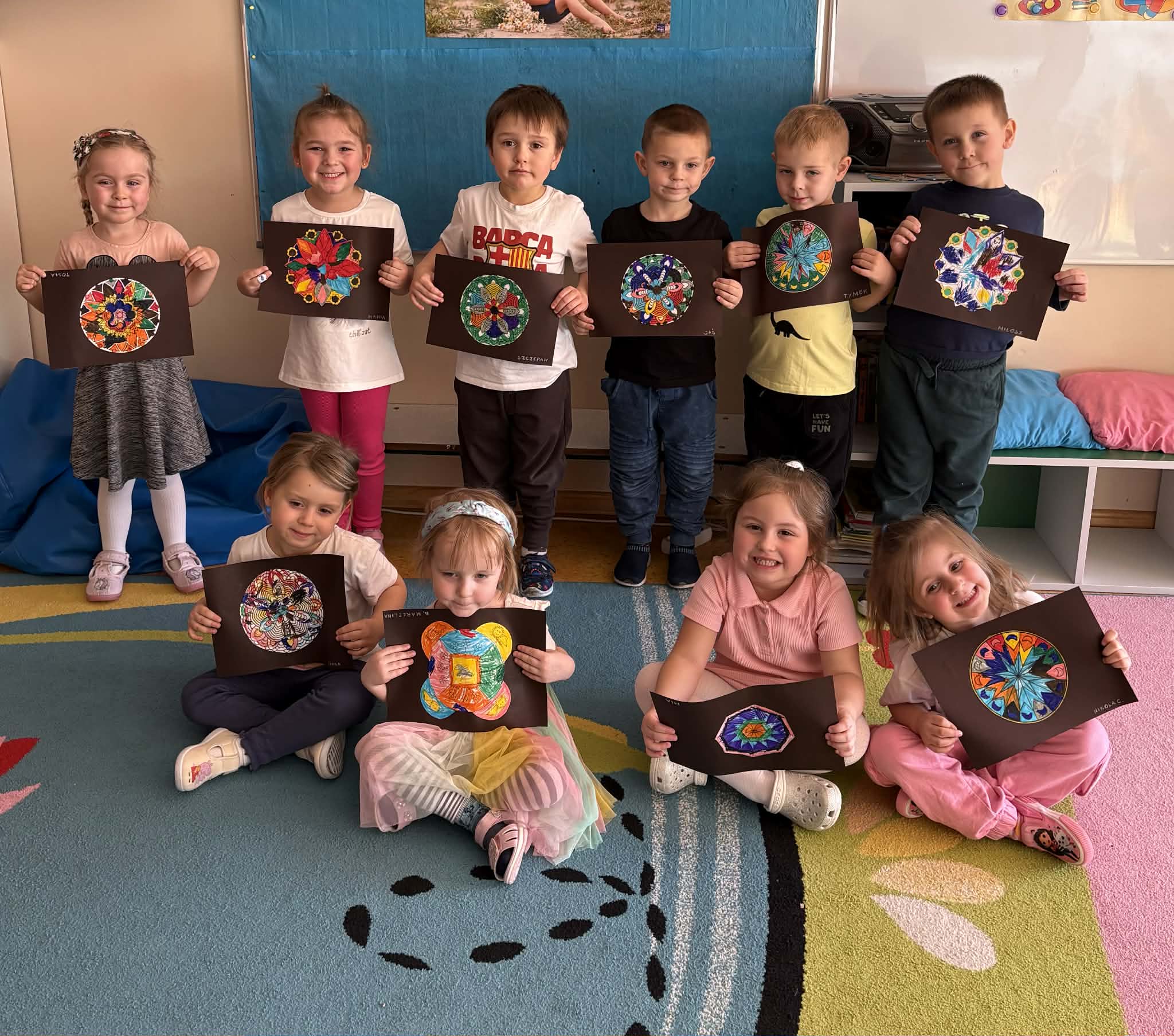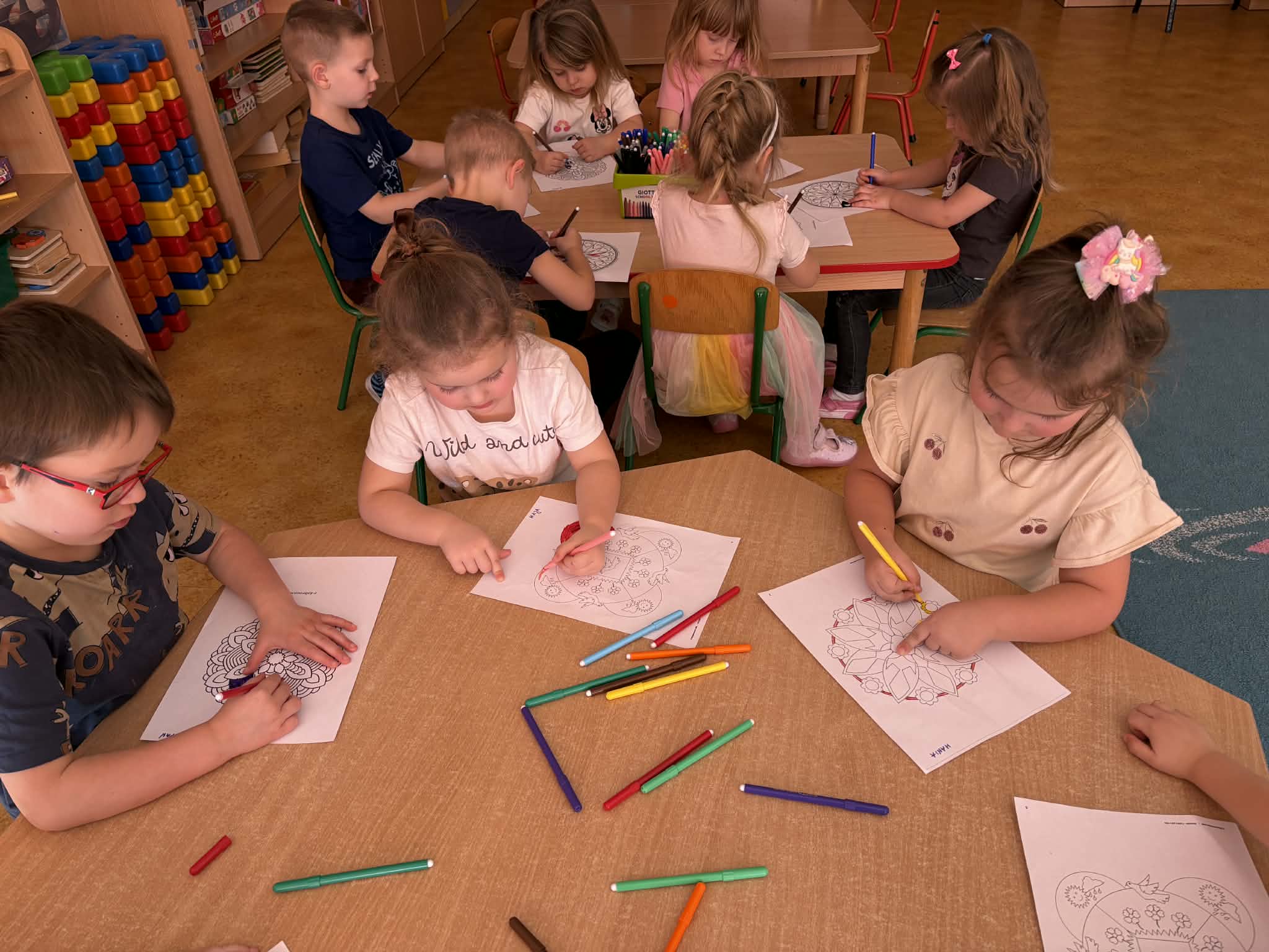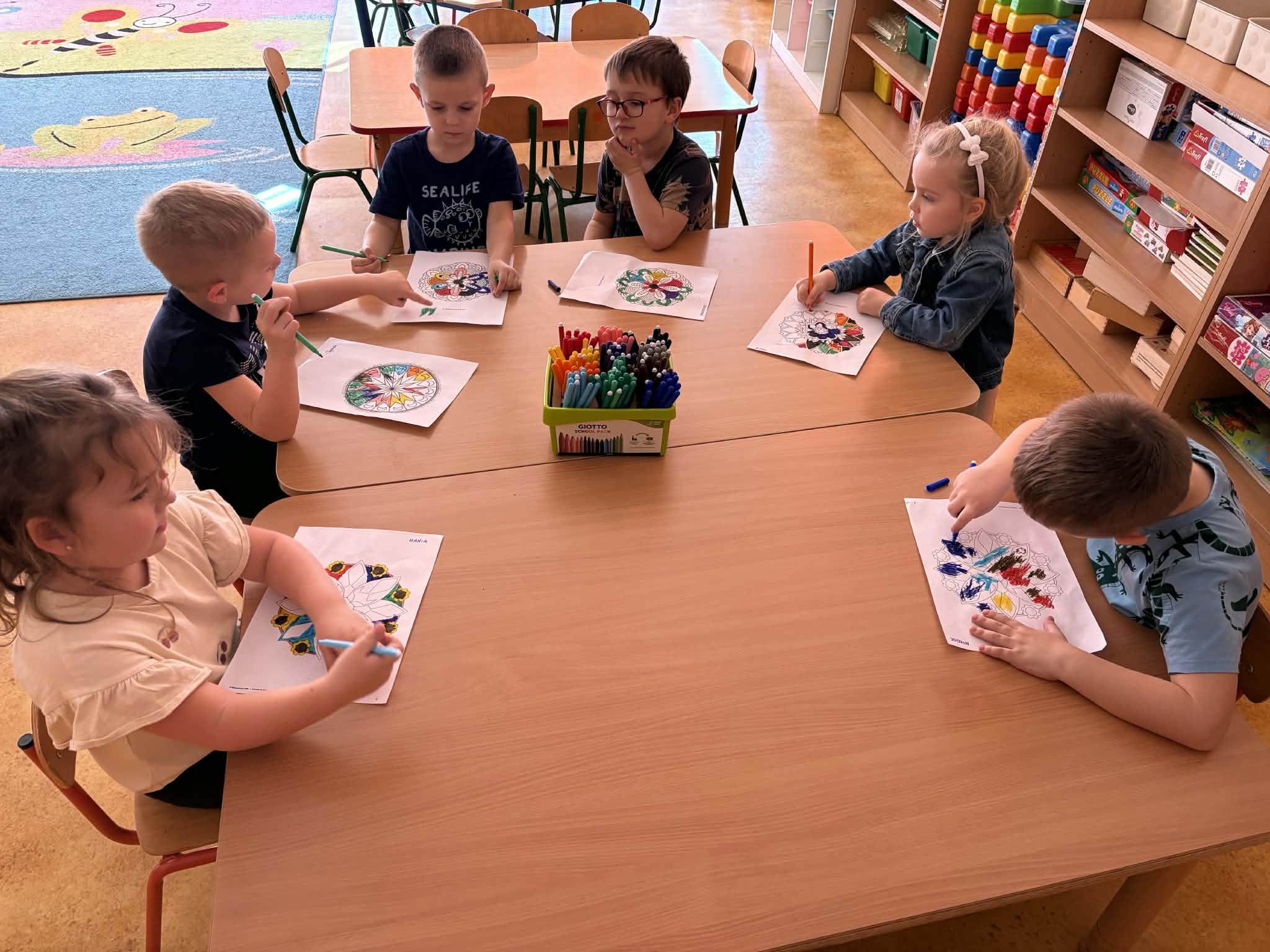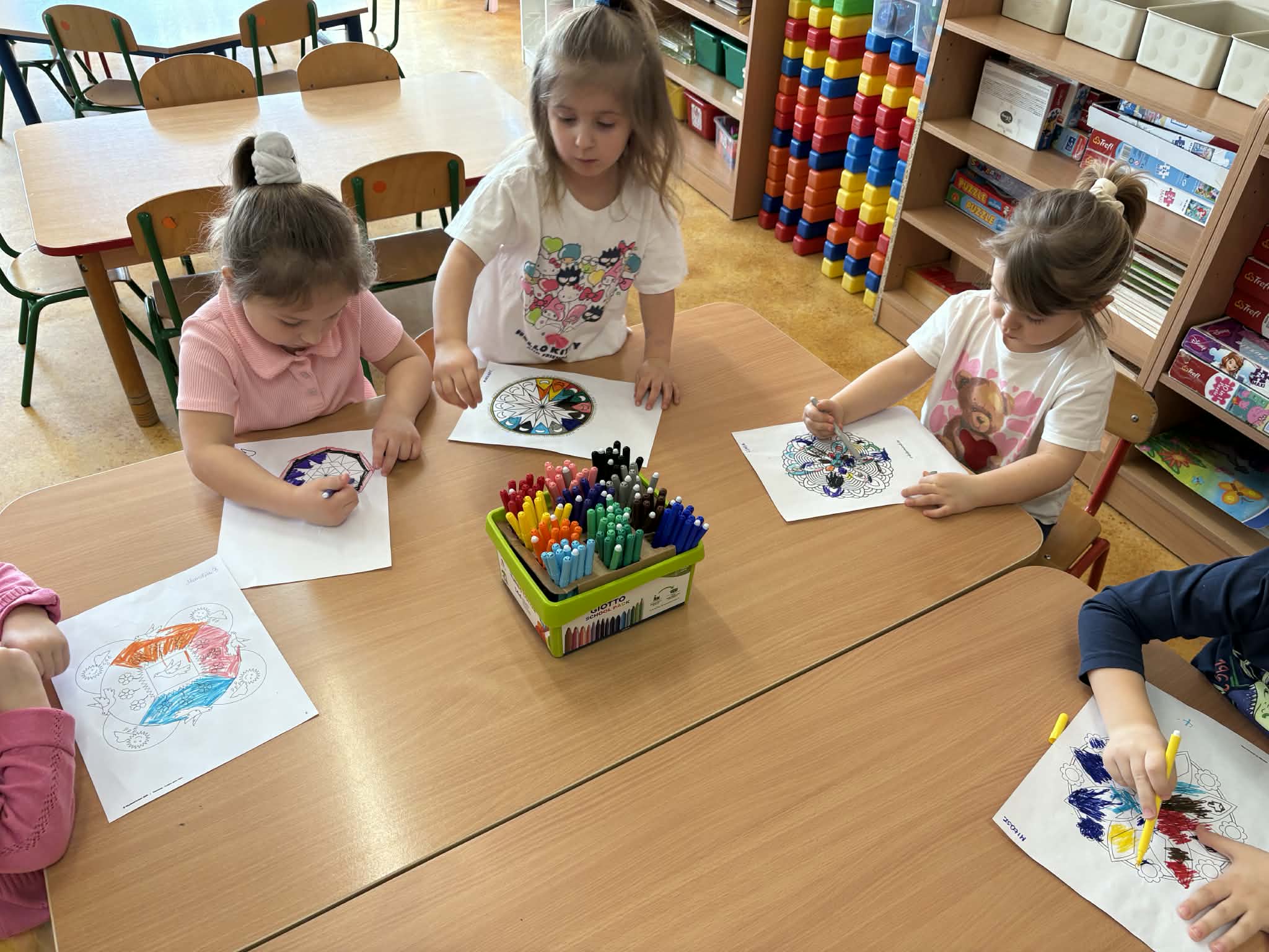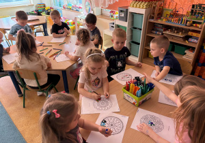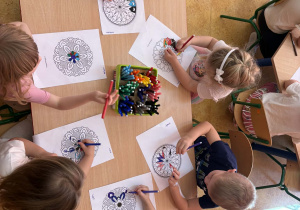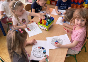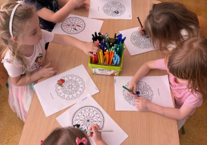 pt. „Jeżyk Staś i magiczny oddech ulgi", dzięki której poznały prosty i skuteczny sposób na opanowanie trudnych emocji poprzez ćwiczenia oddechowe. Następnie wykonały mandale spokoju. Zajęcia zakończyły się chwilą relaksacji, sprzyjającą wyciszeniu i odprężeniu dzieci.