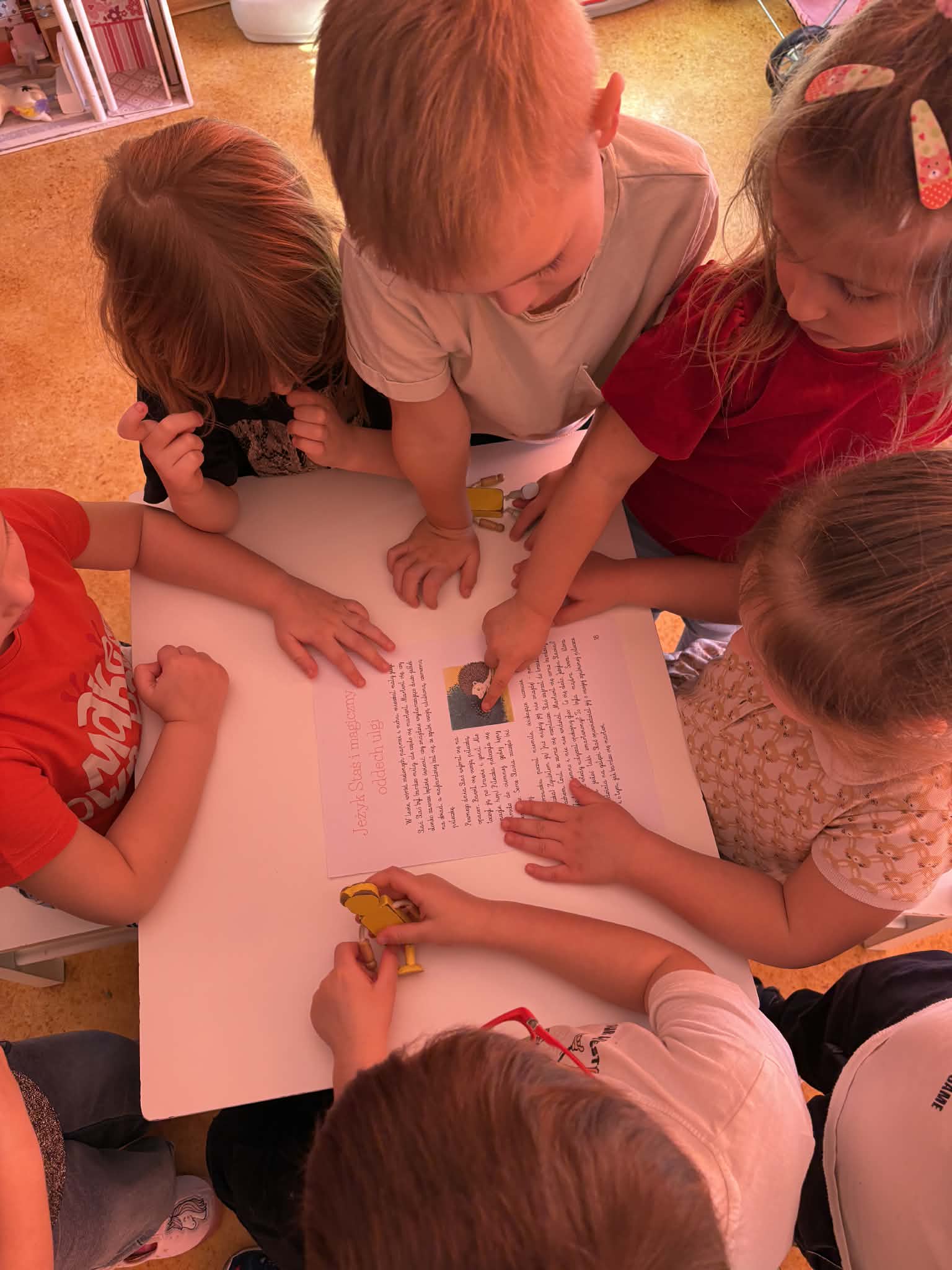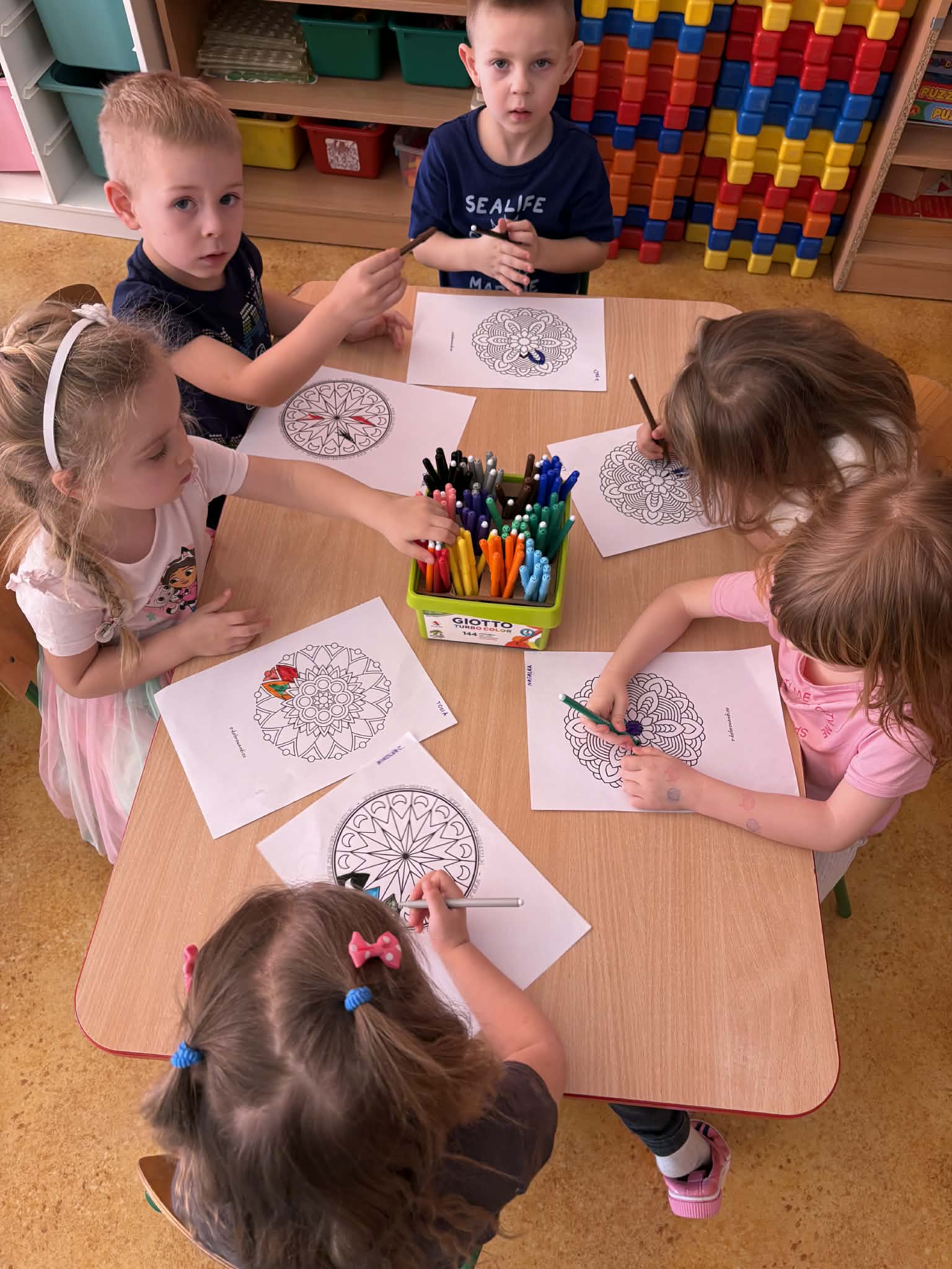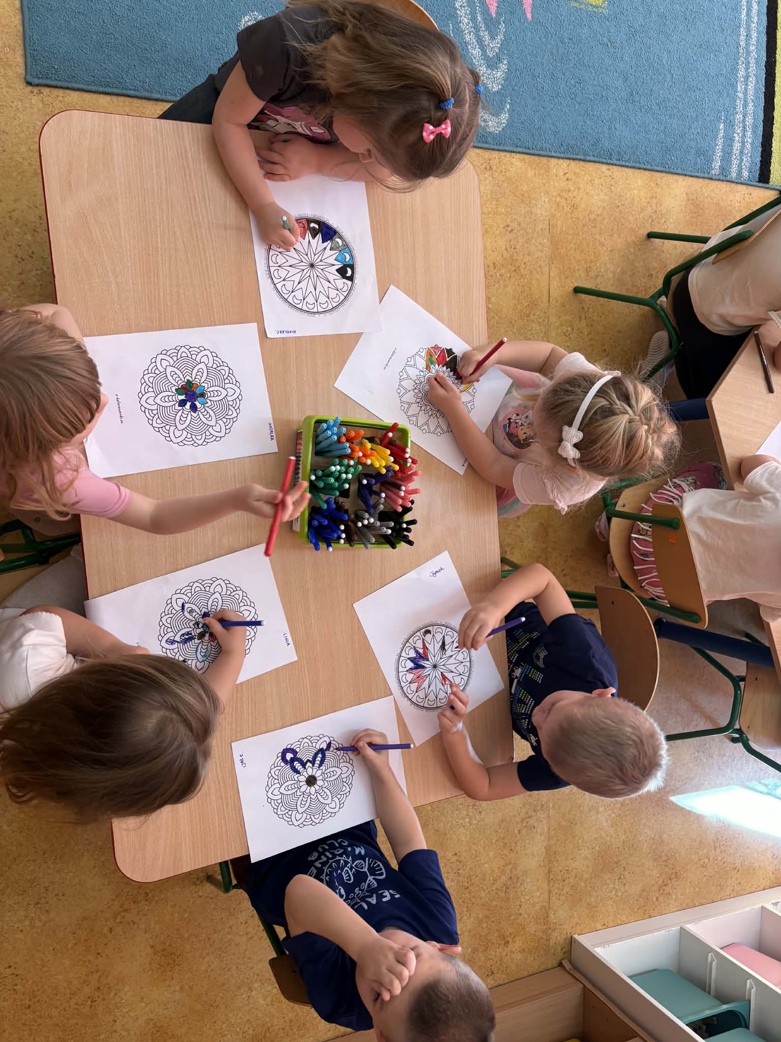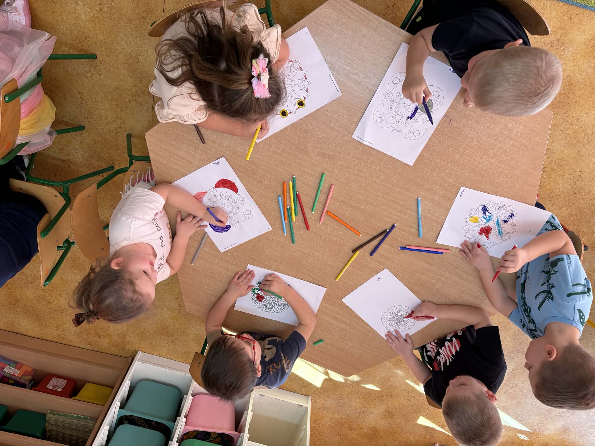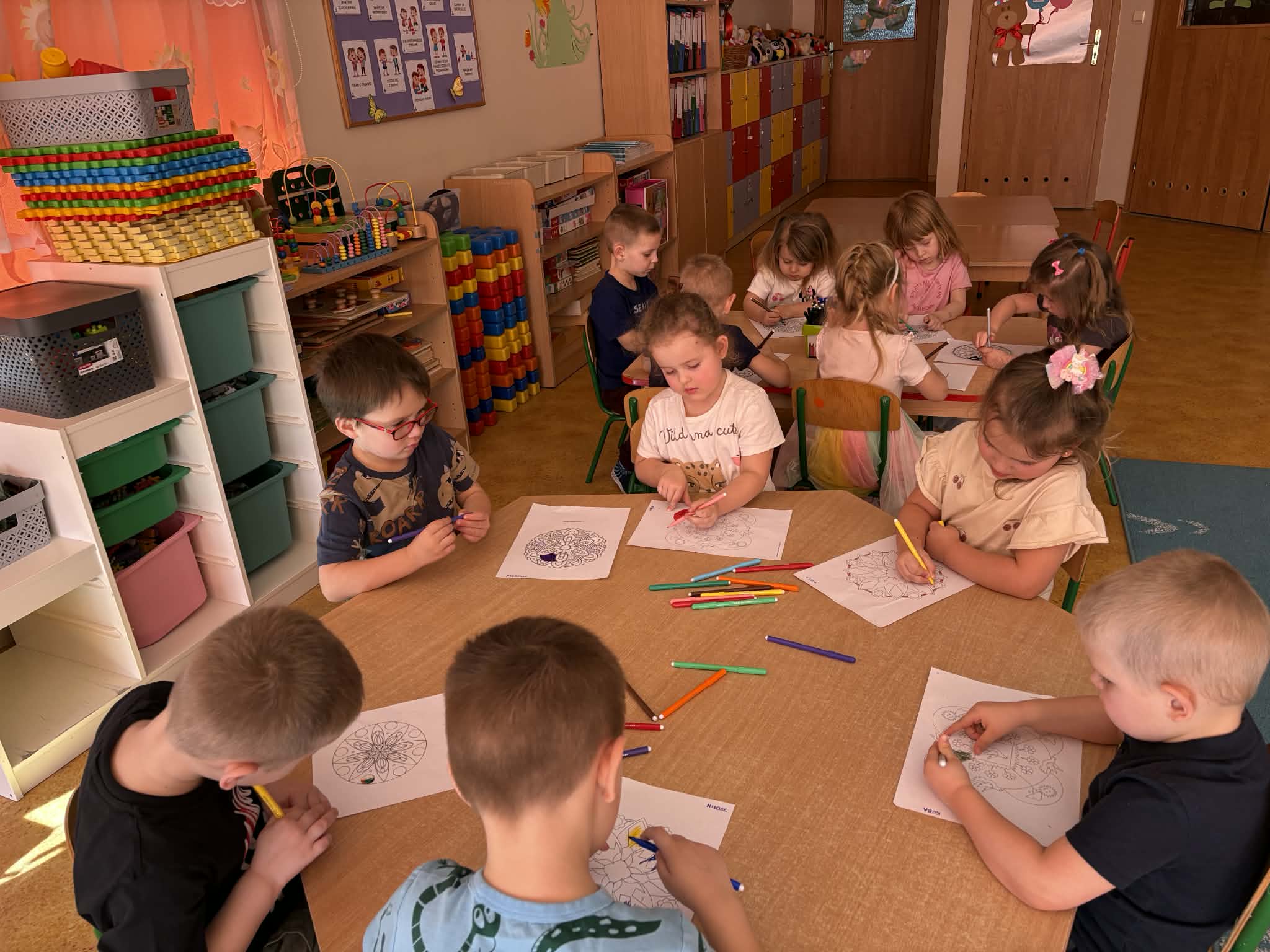 pt. „Jeżyk Staś i magiczny oddech ulgi", dzięki której poznały prosty i skuteczny sposób na opanowanie trudnych emocji poprzez ćwiczenia oddechowe. Następnie wykonały mandale spokoju. Zajęcia zakończyły się chwilą relaksacji, sprzyjającą wyciszeniu i odprężeniu dzieci.