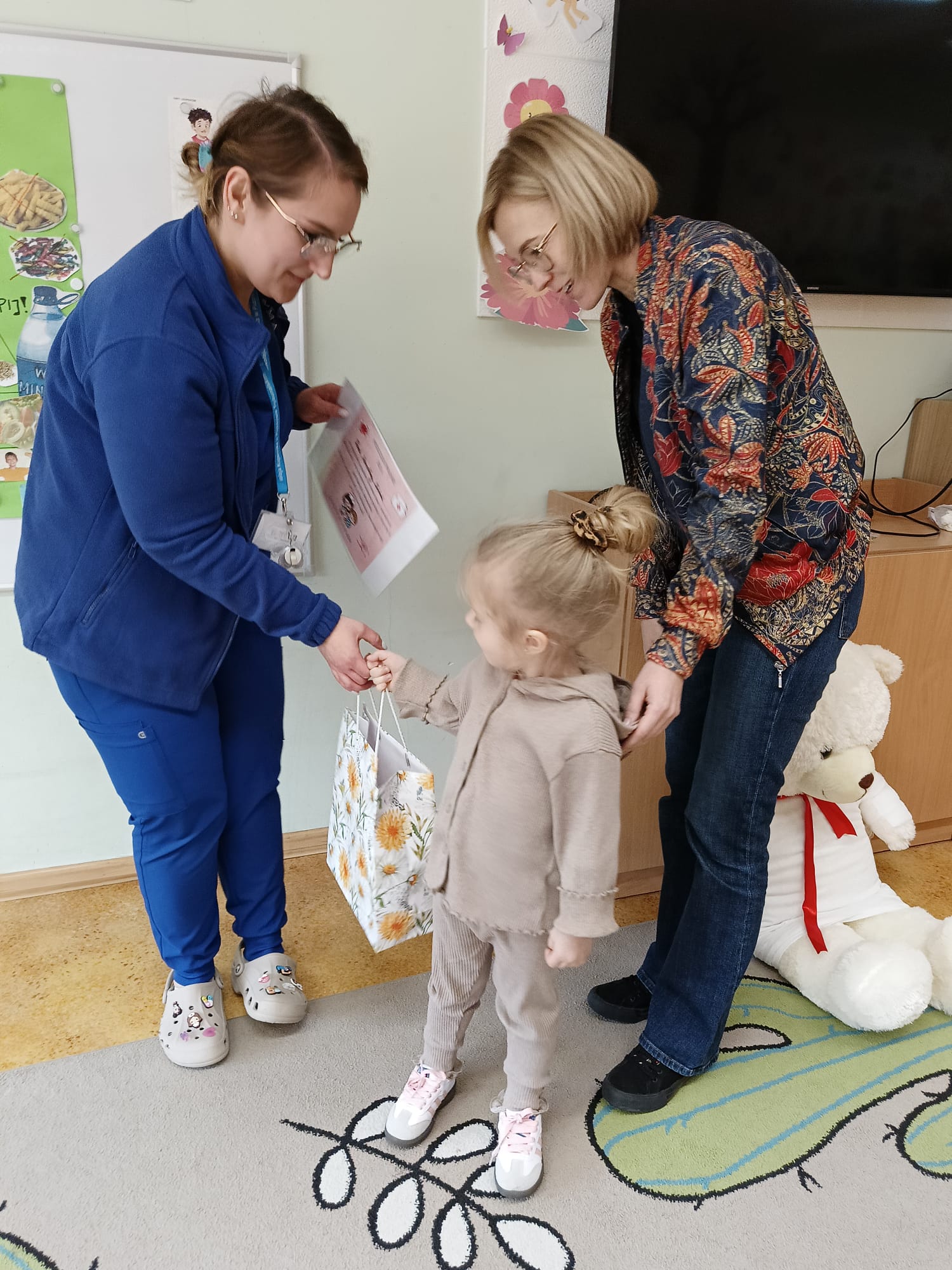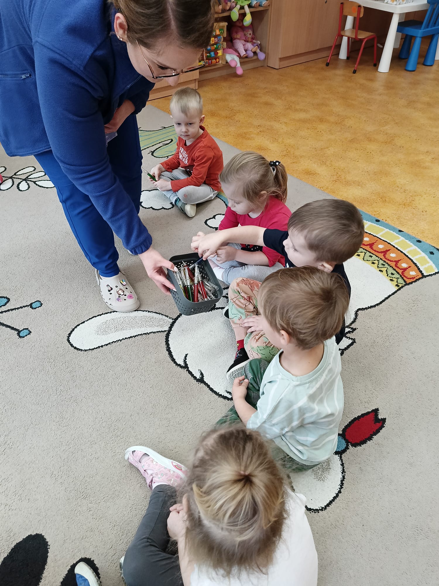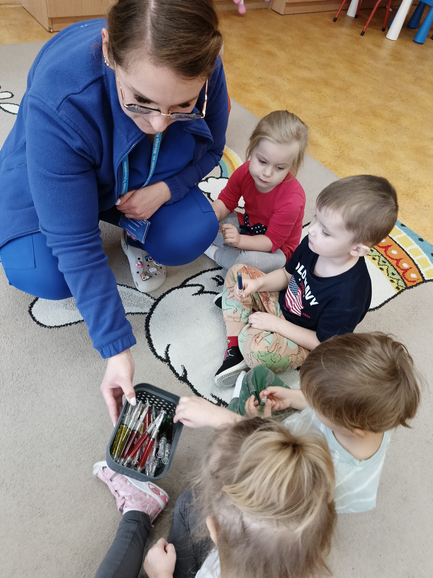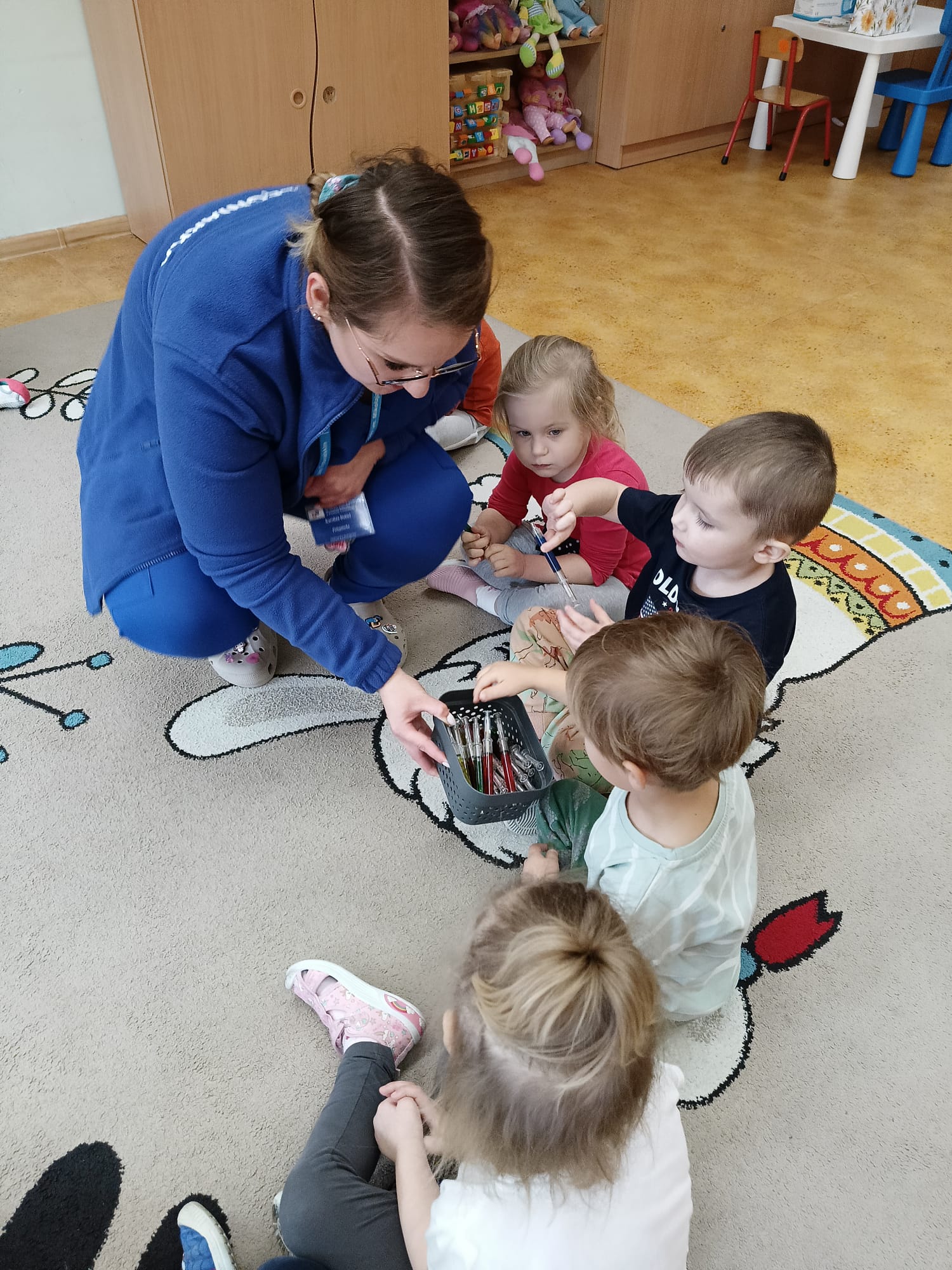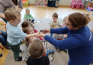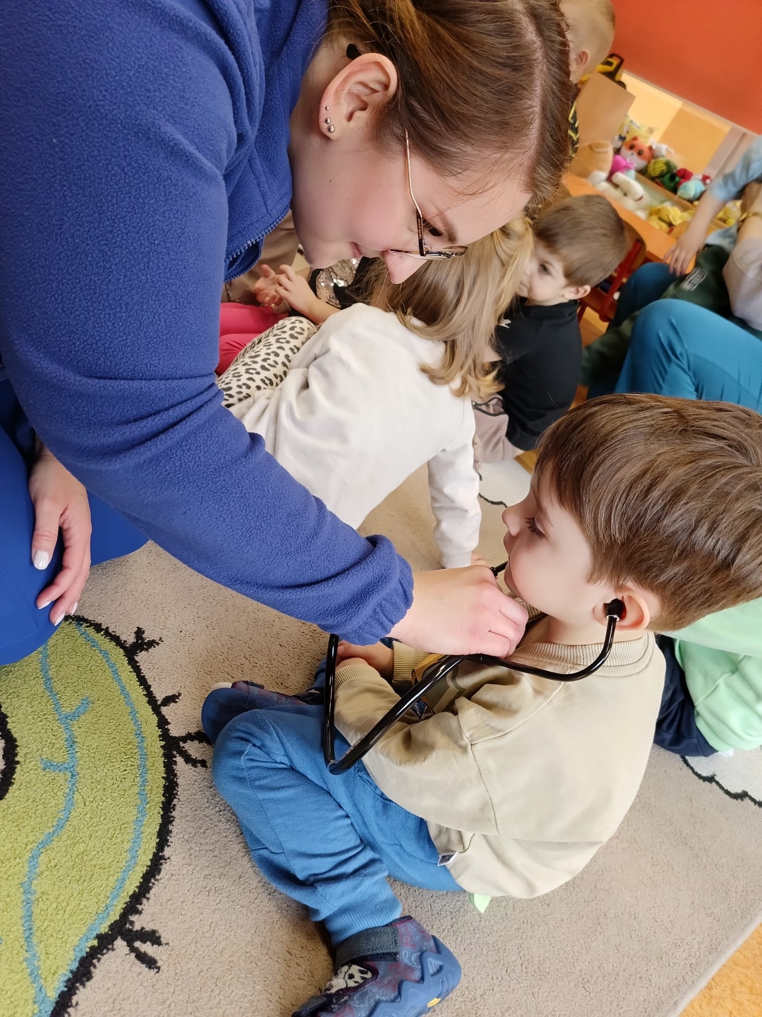 W piątek 27 marca przybył do grupy Krasnali i Motylków, niecodzienny gość – pielęgniarka Pani Karolina Dubiel. Pani Karolina opowiedziała dzieciom na czym polega jej praca, zaprezentowała atrybuty jakimi posługuje się w codziennej pracy, przekazała też informacje jak dbać o zdrowie i higienę. Przedszkolaki uczyły się jak opatrzyć ranę, założyć opaskę uciskową, przykleić plaster, zmierzyć ciśnienie, zrobić zastrzyk, przy pomocy stetoskopu wysłuchiwały bicia serca. Tak praktyczną i zarazem atrakcyjną lekcję z pewnością dzieci zapamiętają na długo. Serdecznie dziękujemy pani Karolinie za poświęcony nam czas. Wizyta pani pielęgniarki zakończyła się pamiątkowym zdjęciem, a Pani Katarzyna Święcicka