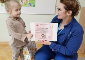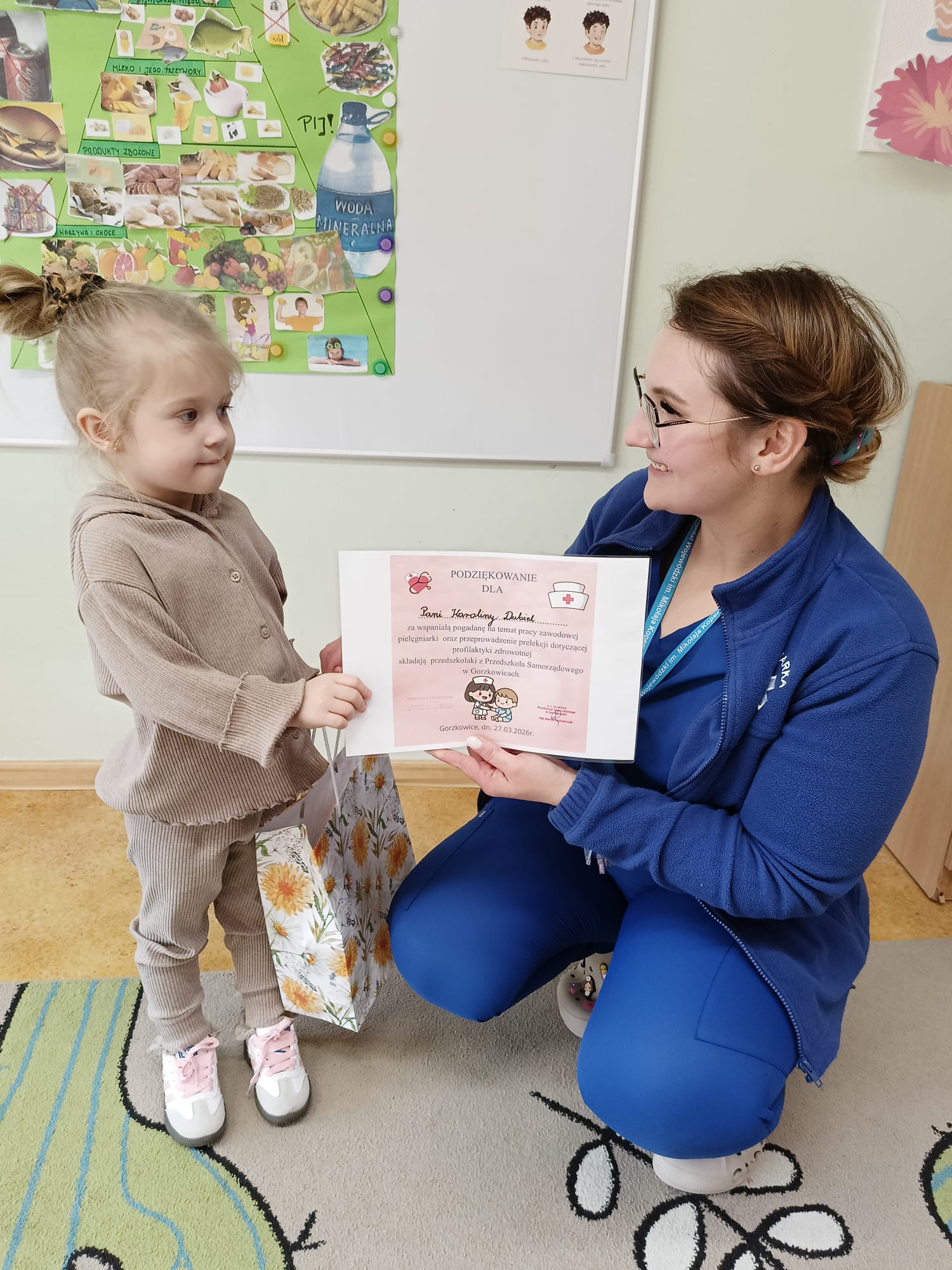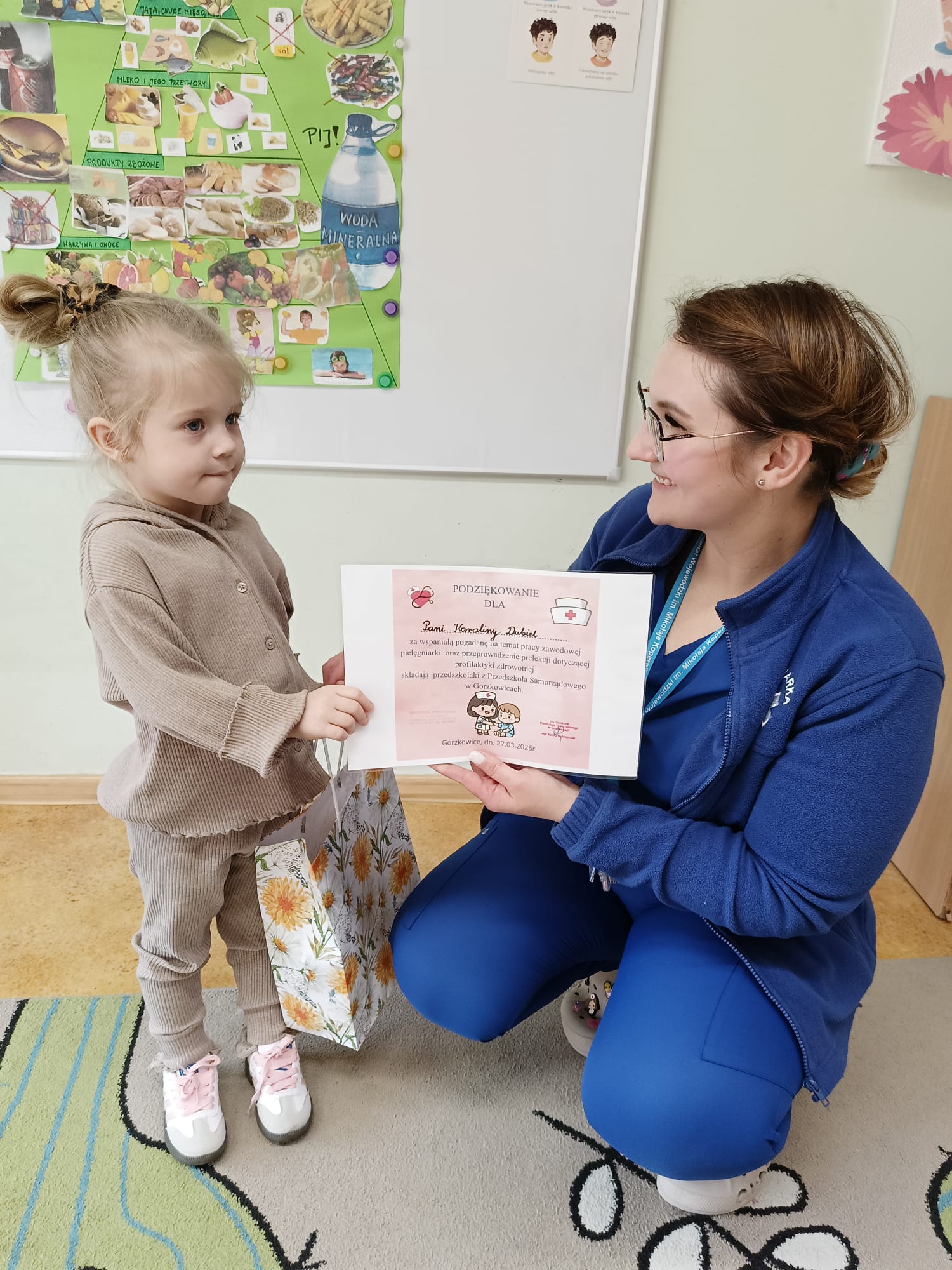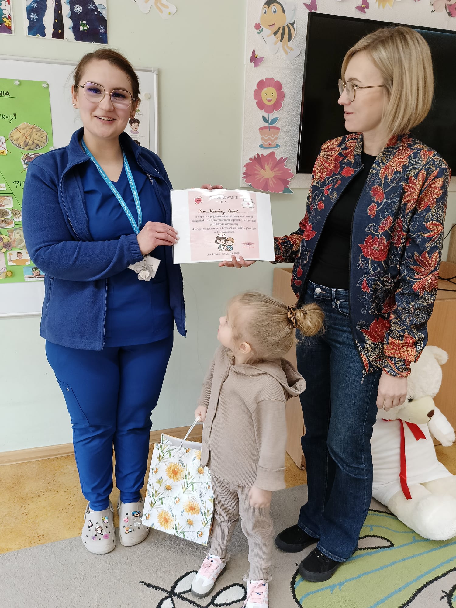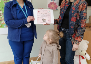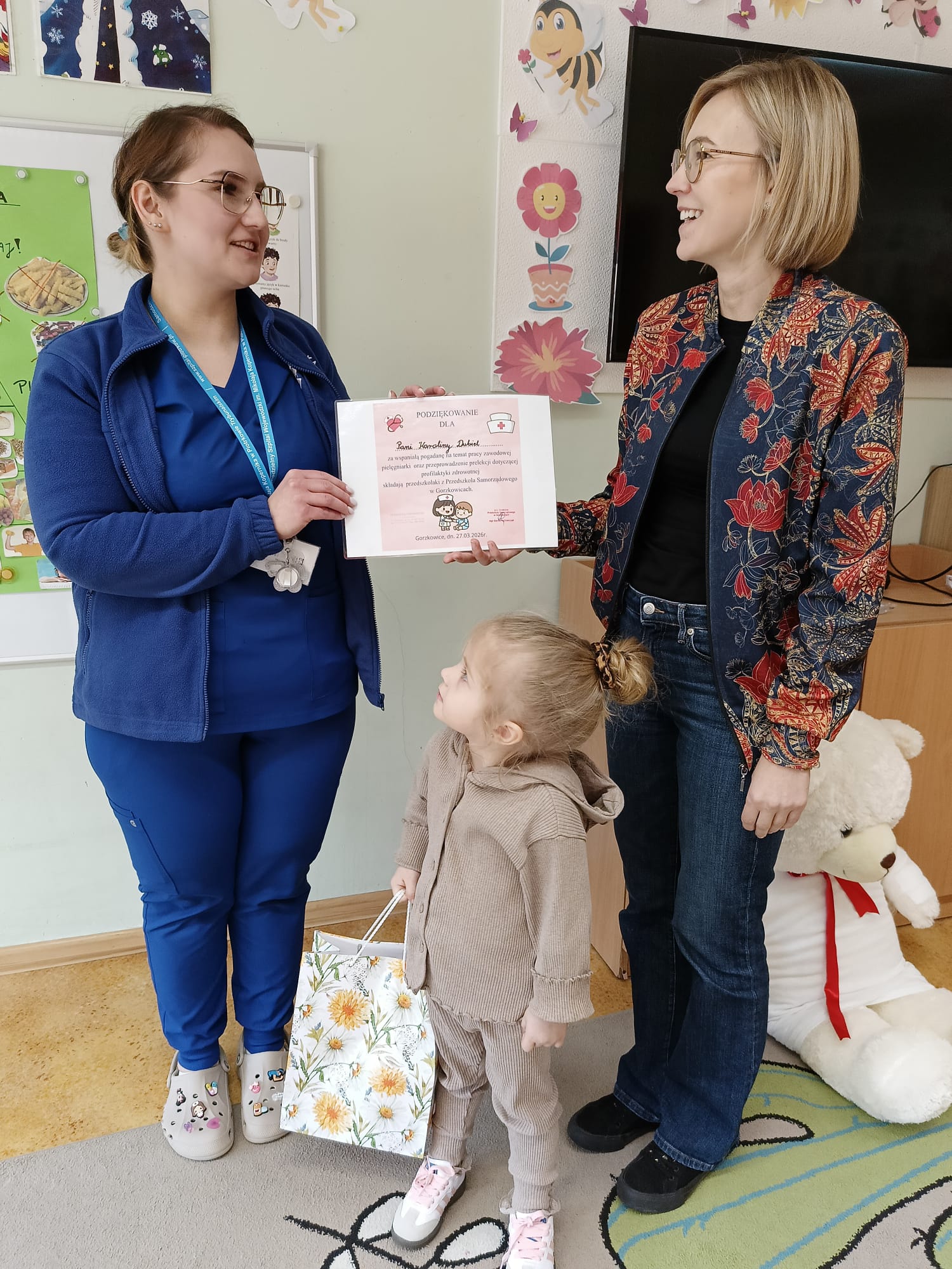 owego w Gorzkowicach wręczyła Pani Karolinie Dubiel upominek oraz pamiątkowy dyplom z podziękowaniem.