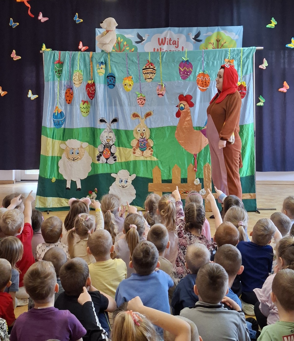 i reagowały z ogromnym zaangażowaniem. Radosna atmosfera, elementy magii oraz bezpośredni kontakt z aktorami wywołały wiele uśmiechów i pozytywnych emocji. Było to wydarzenie, które na długo pozostanie w pamięci dzieci jako pełne ciepła i wiosennej radości spotkanie z teatrem.