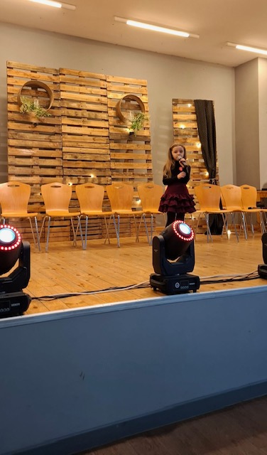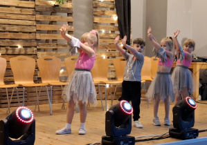 z naszego przedszkola . Reprezentanci grupy Biedronki z radością zatańczyli do utworu „Góry do góry”, a Klara Kruszyńska z grupy Pszczółki pięknie zaprezentowała się, wykonując piosenkę „A ja mam psa”. Brawo dla małych artystów za odwagę, uśmiech i ogromne serca!
