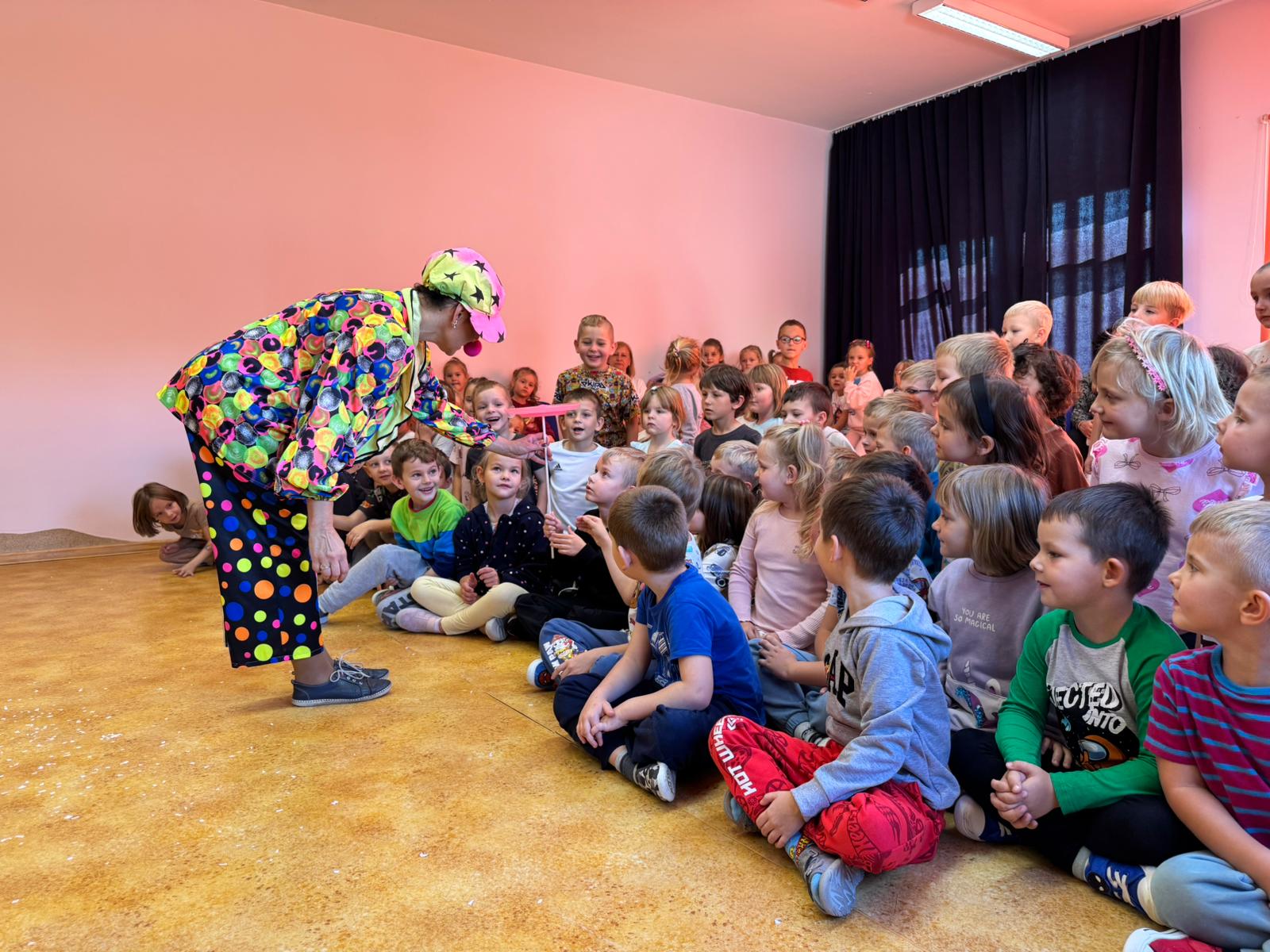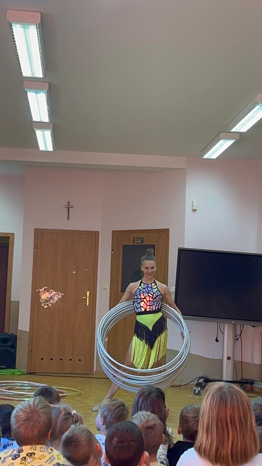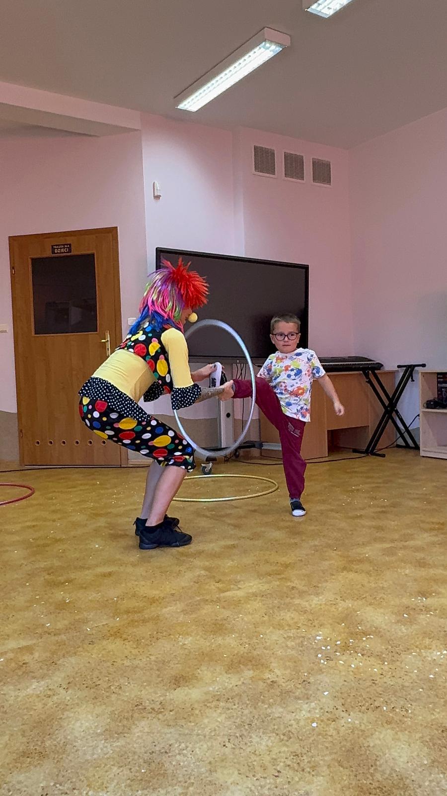 Dnia 3 października w Przedszkolu Samorządowym w Gorzkowicach mieliśmy niezwykłą przyjemność gościć cyrk ,, Obimbolando". Artyści przedstawili wiele akrobacji cyrkowych. Mogliśmy podziwiać niesamowite pokazy akrobatyczne hula- hop, pokaz iluzjonistyczny, a także zabawę z klaunem, która dostarczyła dzieciom mnóstwo śmiechu. To był dzień pełen niesamowitych wrażeń i niezapomnianych występów. Wszystkie dzieci na zakończenie podziękowały akrobatom za niezwykłe widowisko gromkimi brawami.