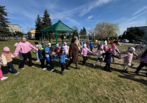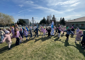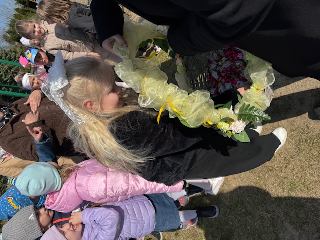1 kwietnia 2026 roku naszego Przedszkola przybył w odwiedziny Wielkanocny Zajączek, który sprawił naszym dzieciom mnóstwo radości i uśmiechu swoją obecnością. Zajączek wcześniej z pomocą swoich pomocników poukrywał smaczne niespodzianki. Dzieciaczki wspólnie z puszystym gościem ruszyły na poszukiwanie jajeczek, następnie odpowiedziały wspólnie na kilka zagadek dotyczących świąt Wielkanocnych i wzięły udział w kilku zabawach sprawnościowych. Po zakończeniu zmagań Zajączek porwał wszystkie dzieci do wspólnej zabawy.