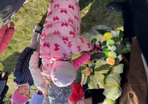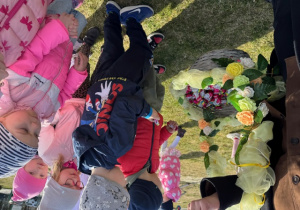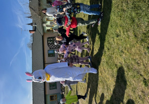 Na koniec swojej wizyty nasz puszysty gość przygotował słodki upominek dla każdego i zrobił sobie z dziećmi pamiątkowe zdjęcie. Do zobaczenia za rok Wielkanocny Zajączku !